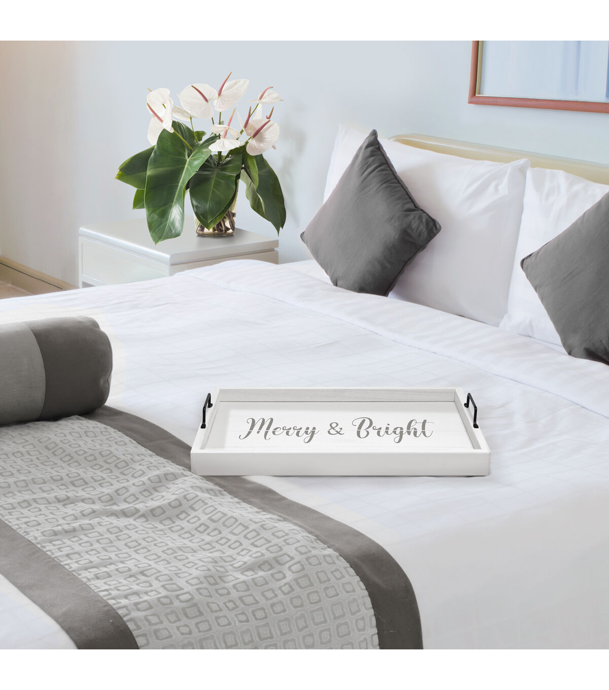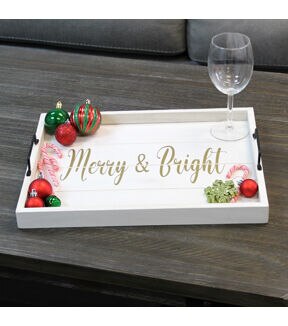 All The Rages Decorative Merry and Bright Wood Serving Tray 15.50 x 12