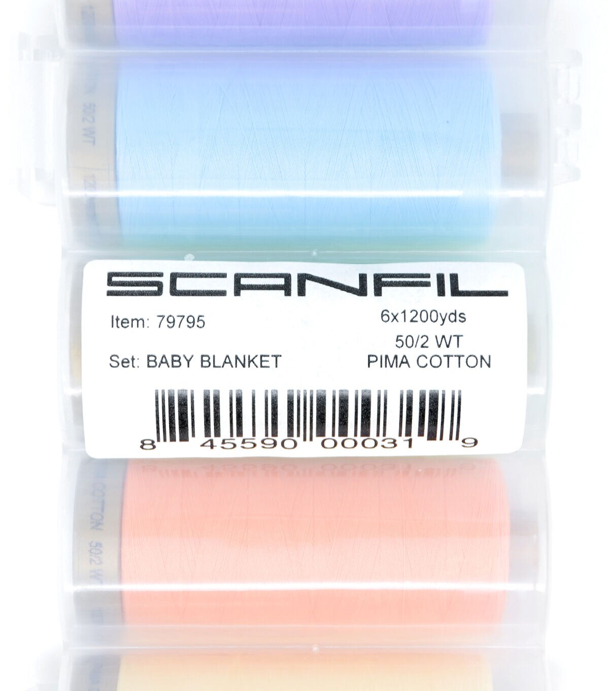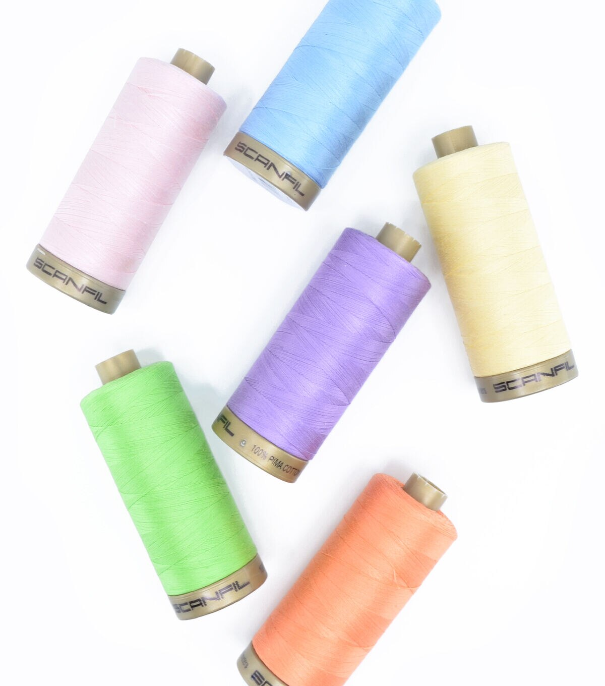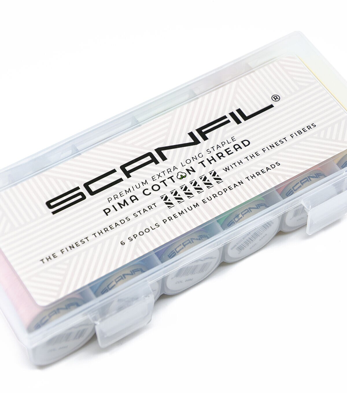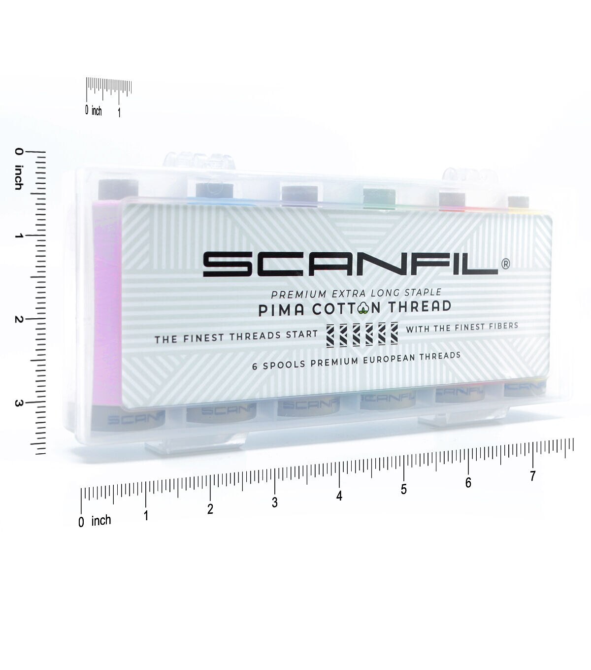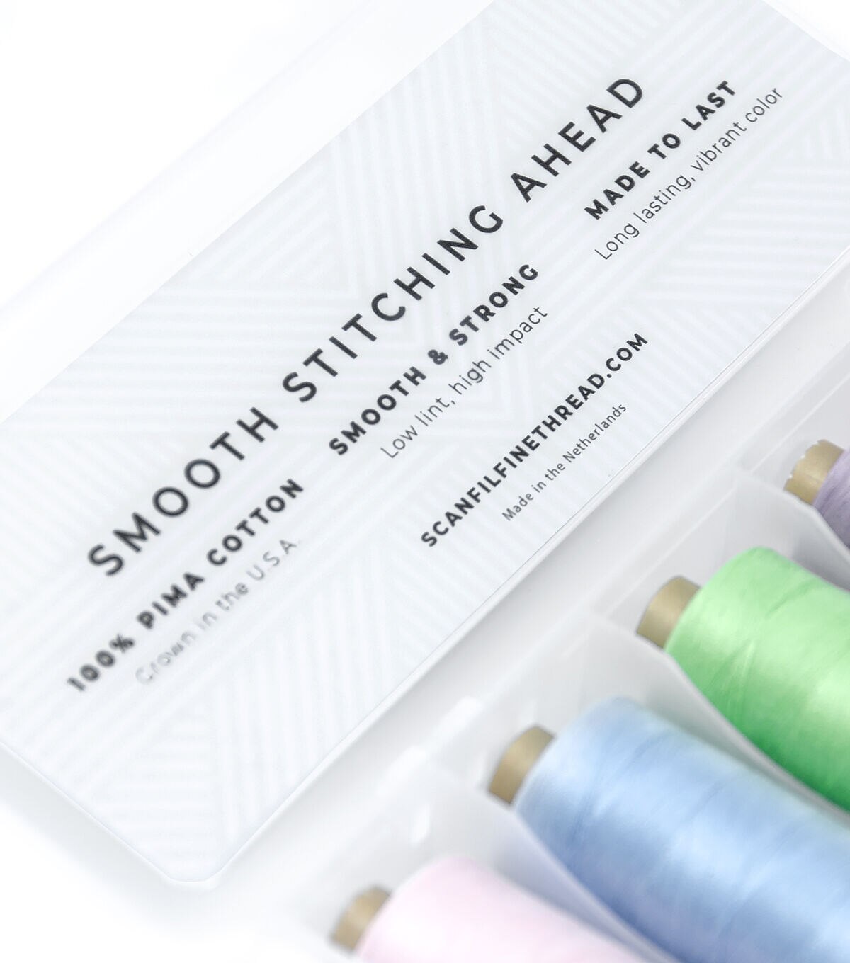 SCANFIL Pima Cotton 50 Wt Thread 1200 Yds 6ct and Storage Box Pastel