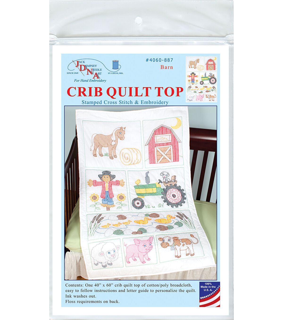 Bucilla 34 x 43 On the Farm Crib Cover Stamped Cross Stitch Kit