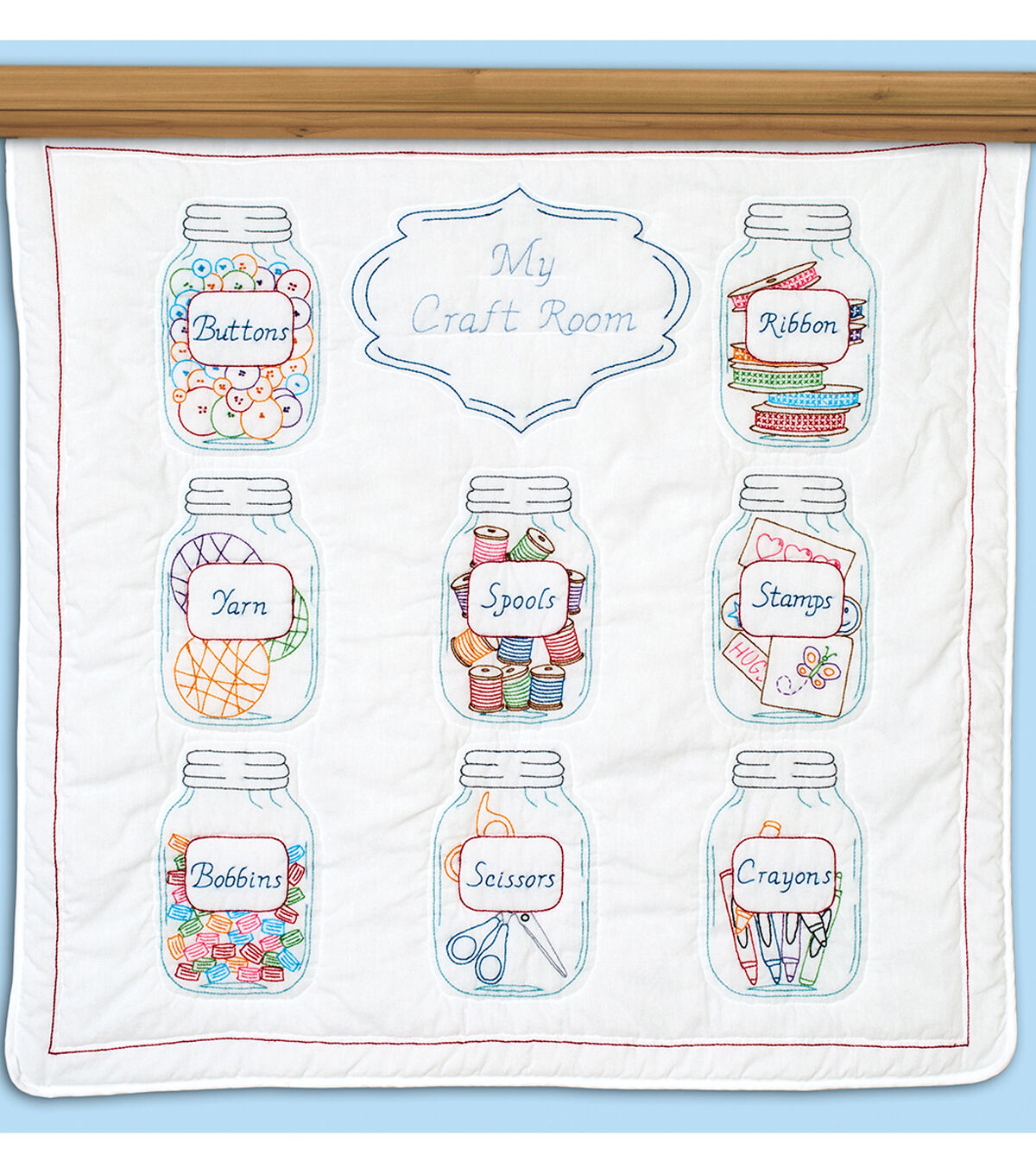 Stamped White Wall Or Lap Quilt 36X36 Mason Jars