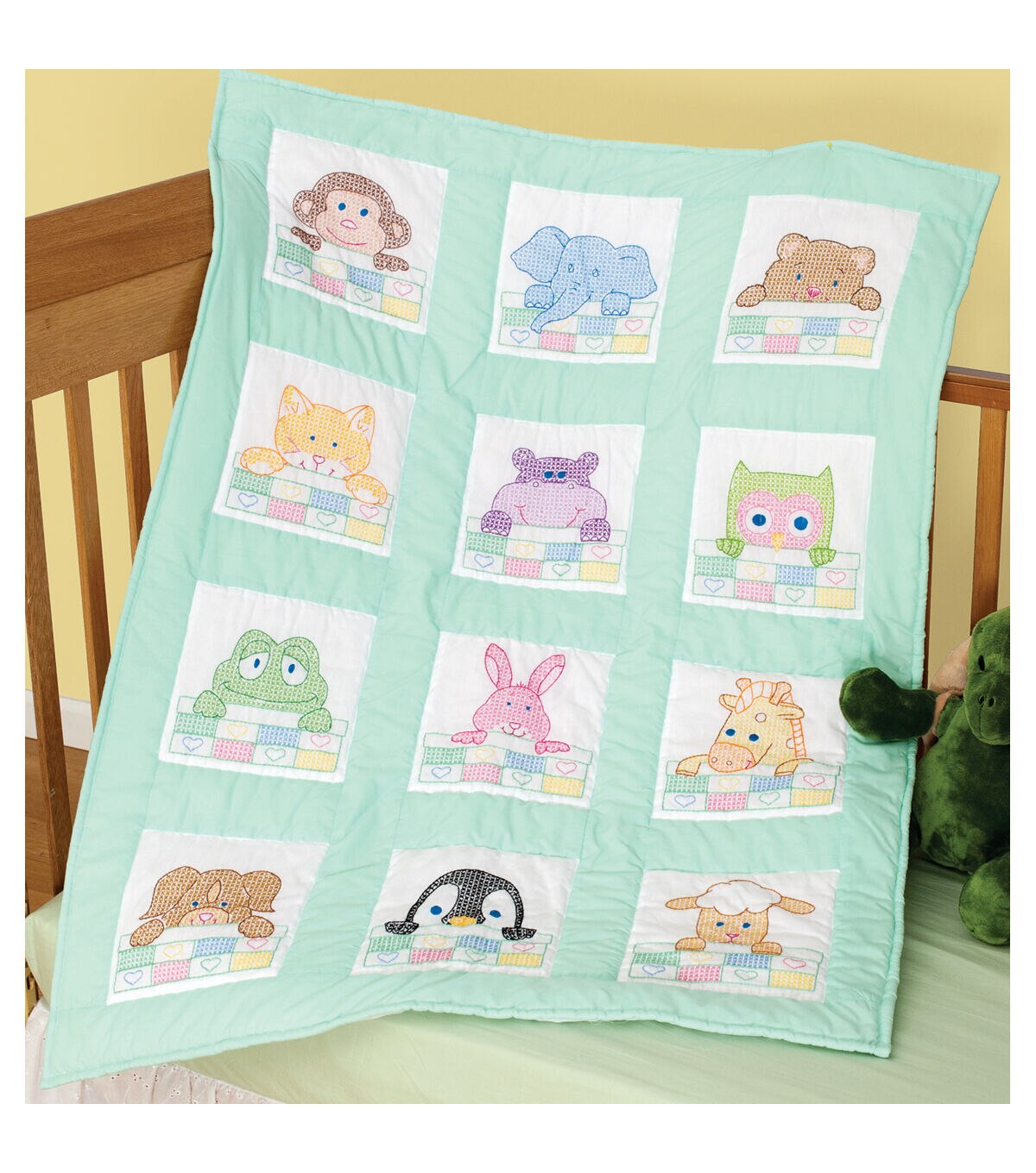 Jack Dempsey 9 Forest Friends Stamped Nursery Quilt Blocks 12ct