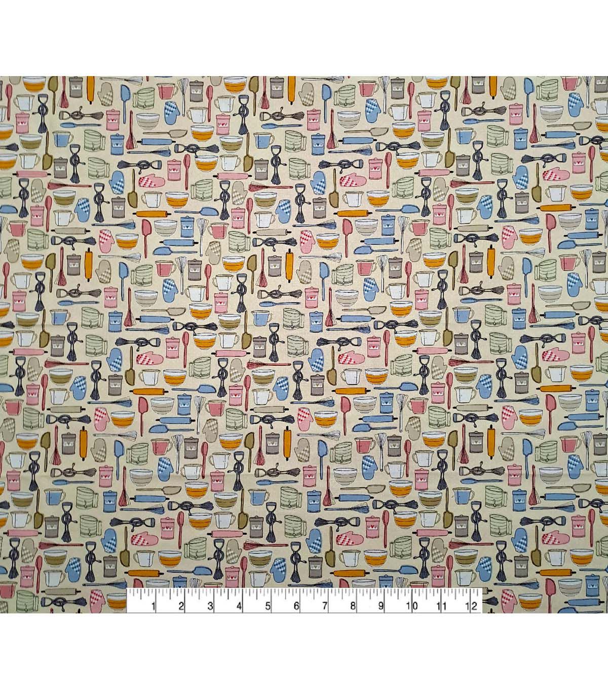 Baking Tools on Brown Novelty Cotton Fabric