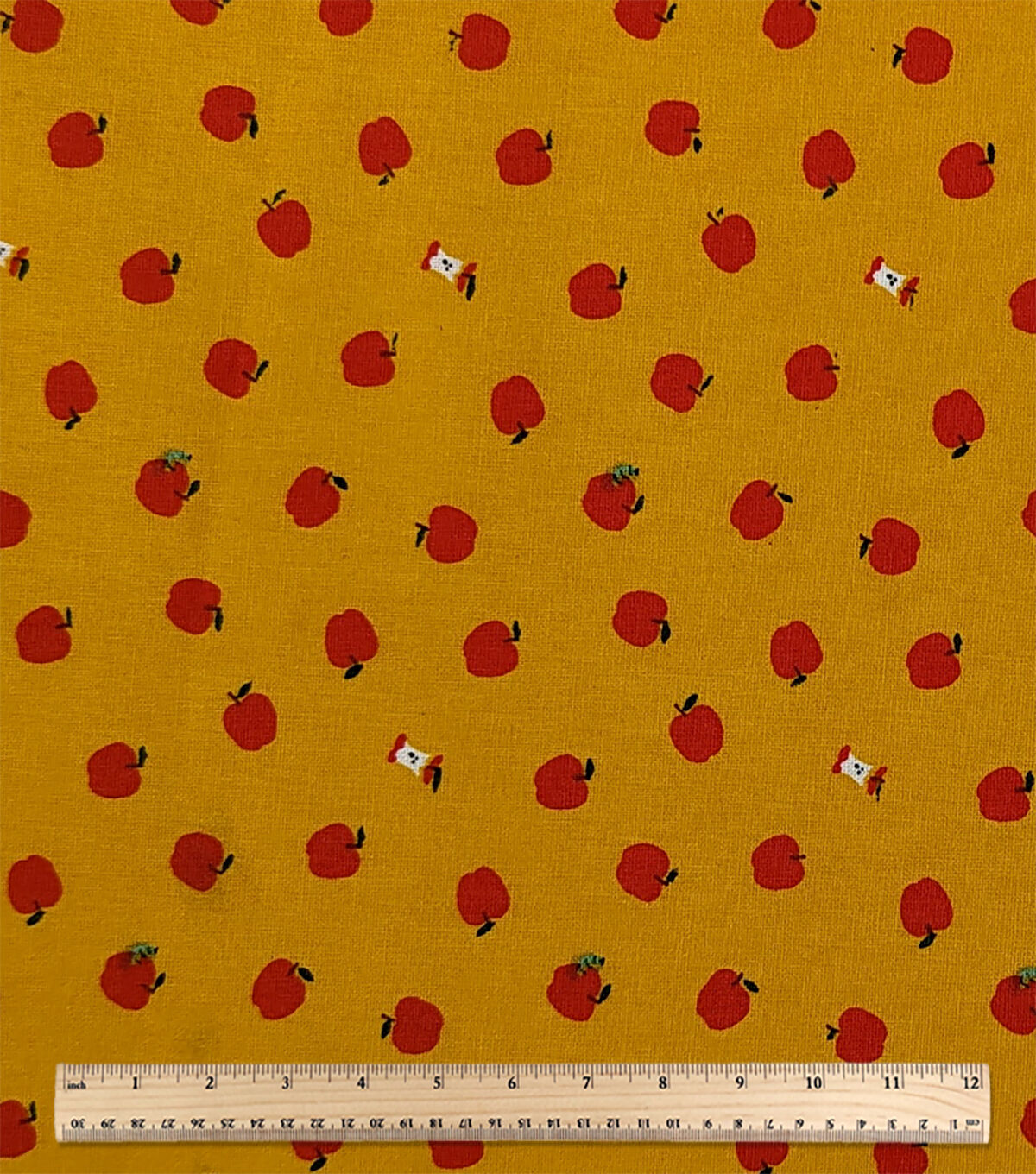 Apples On Yellow Novelty Cotton Fabric by POP!