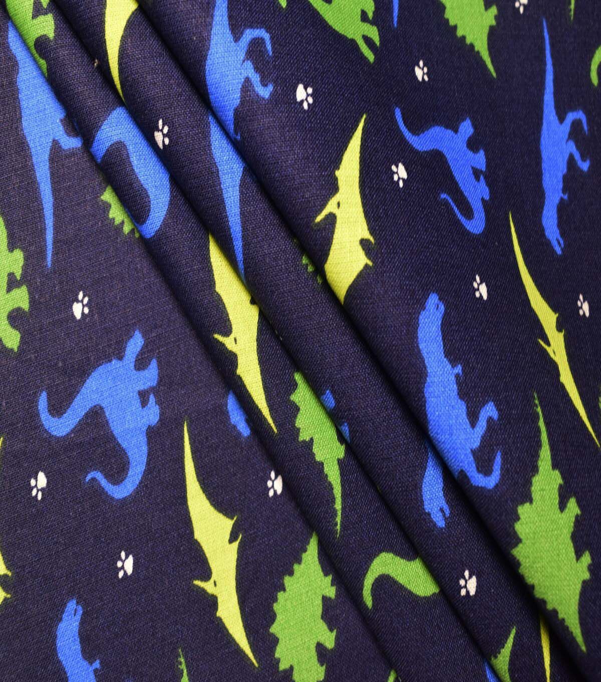 Dinosaur Silhouettes on Dark Blue Cotton Fabric by Quilter's Showcase