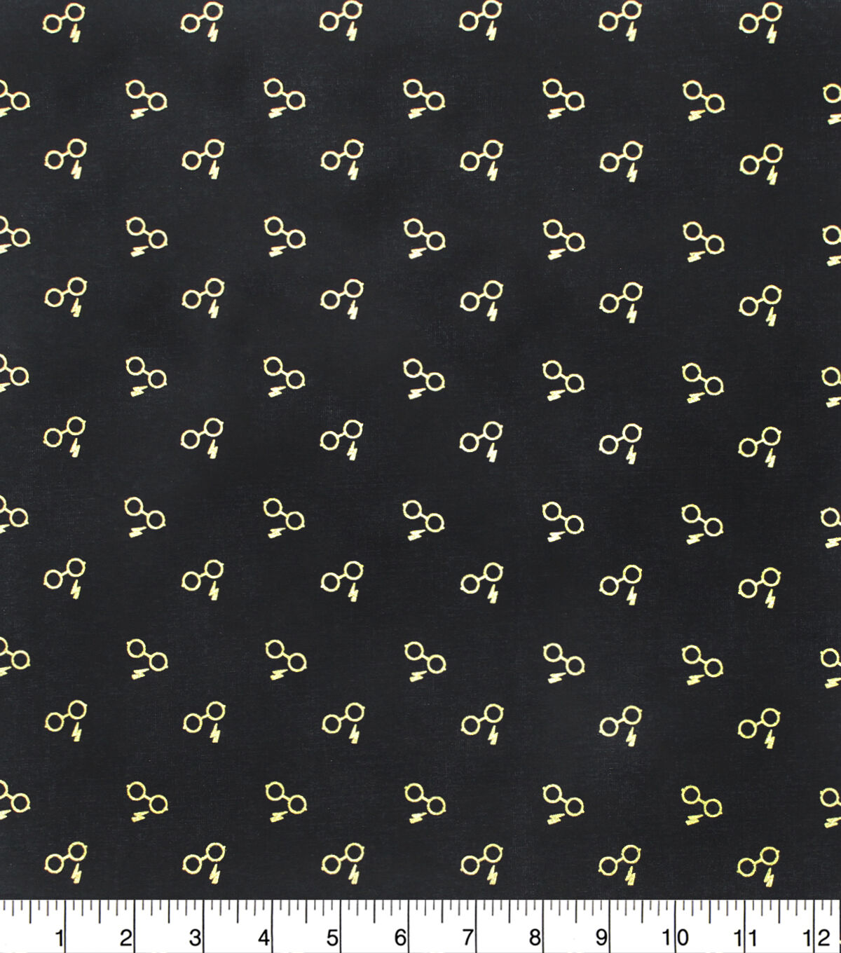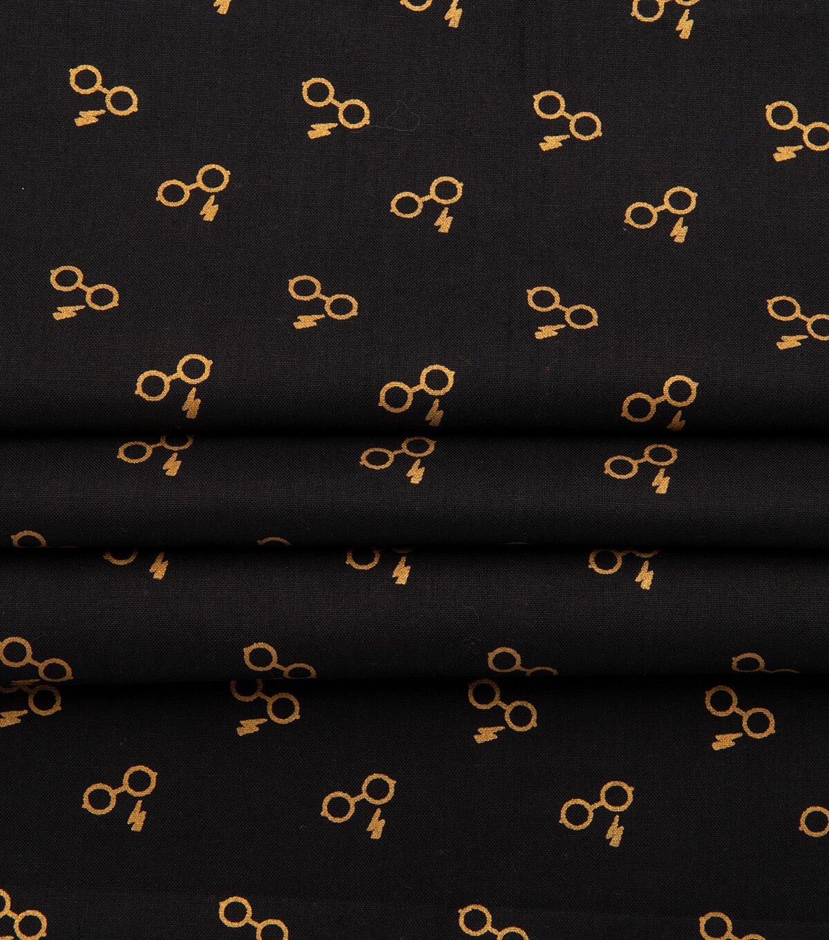 Harry Potter Cotton Fabric Metallic Glasses & Lightning Bolts