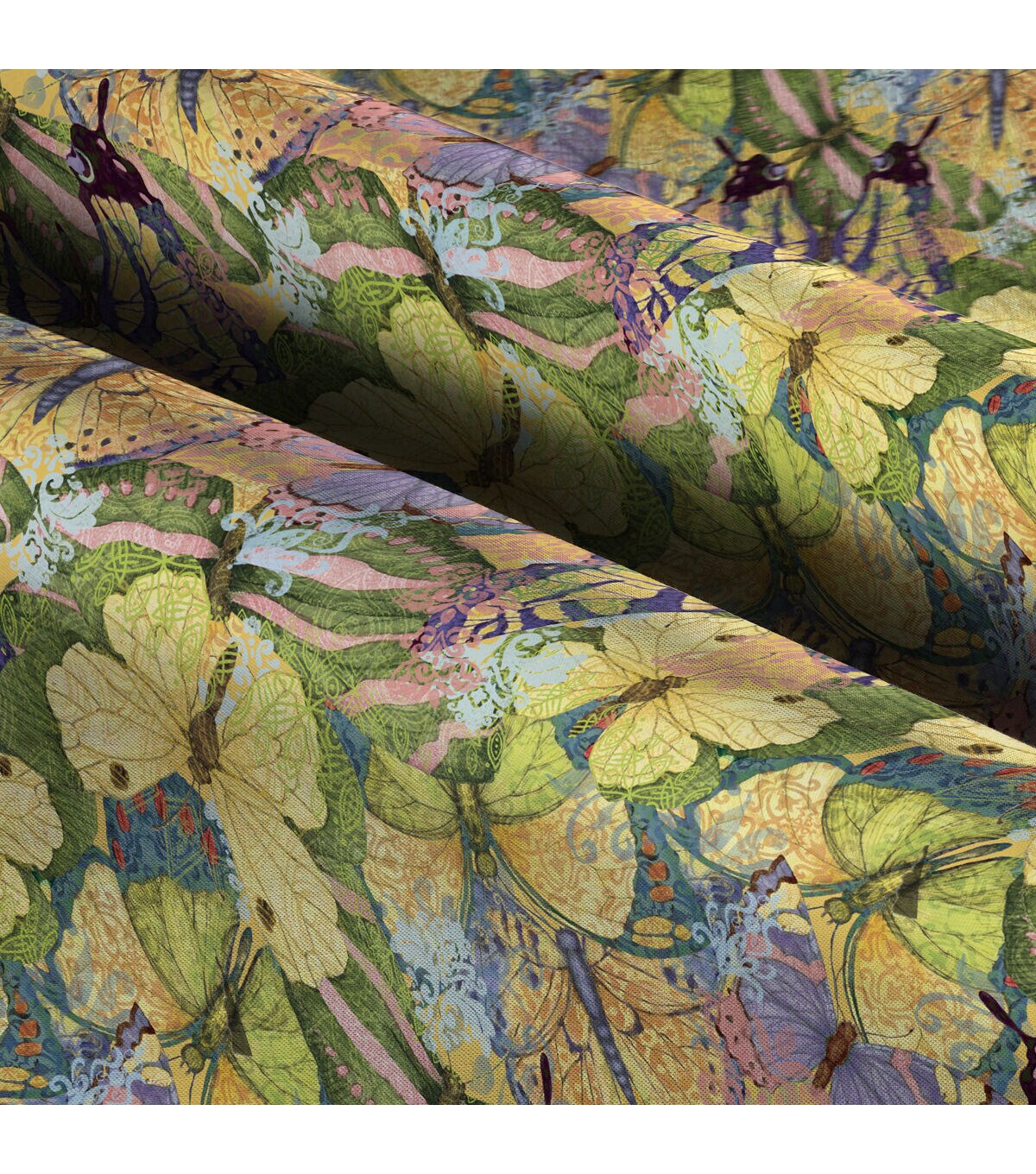Yellow Floral Garden Butterfly Collage Premium Cotton Fabric