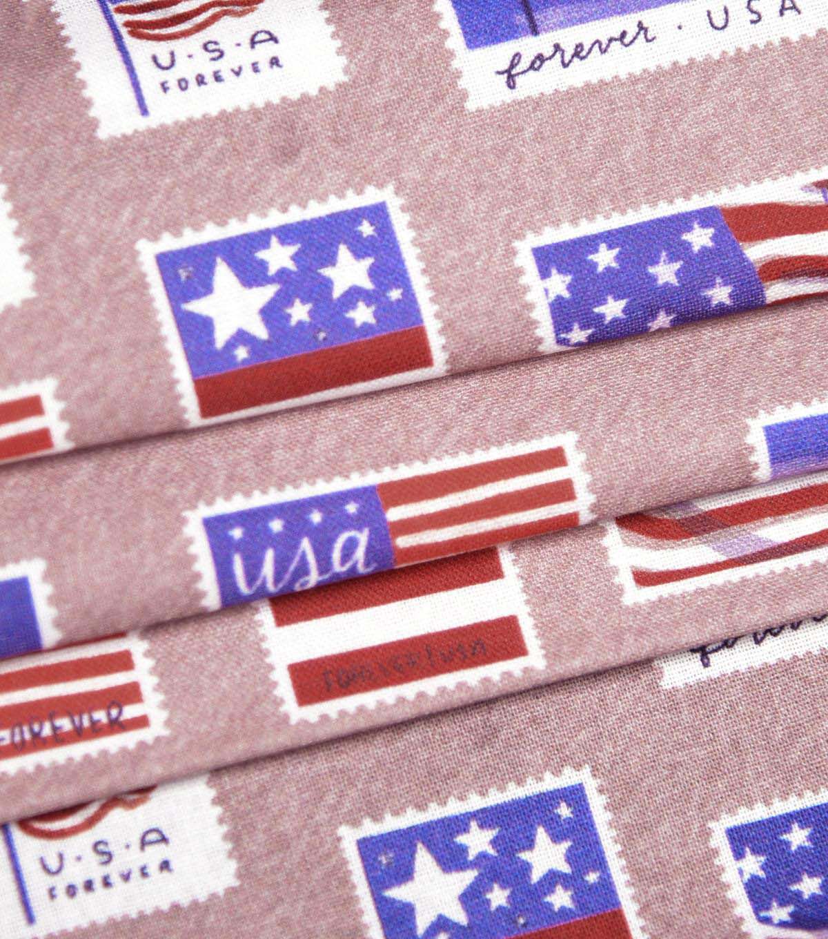 Flag Stamps on Light Purple Patriotic Cotton Fabric