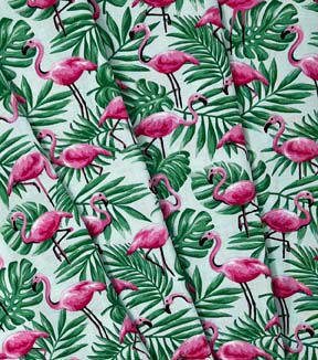 Fabric Traditions Pink Flamingos In Palm Leaves Novelty Cotton Fabric
