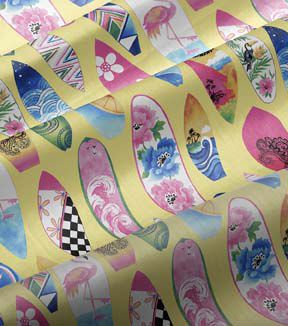 Fabric Traditions Surfboards on Yellow Novelty Cotton Fabric