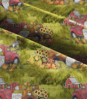 Red Truck Pumpkin Sale Harvest Cotton Fabric
