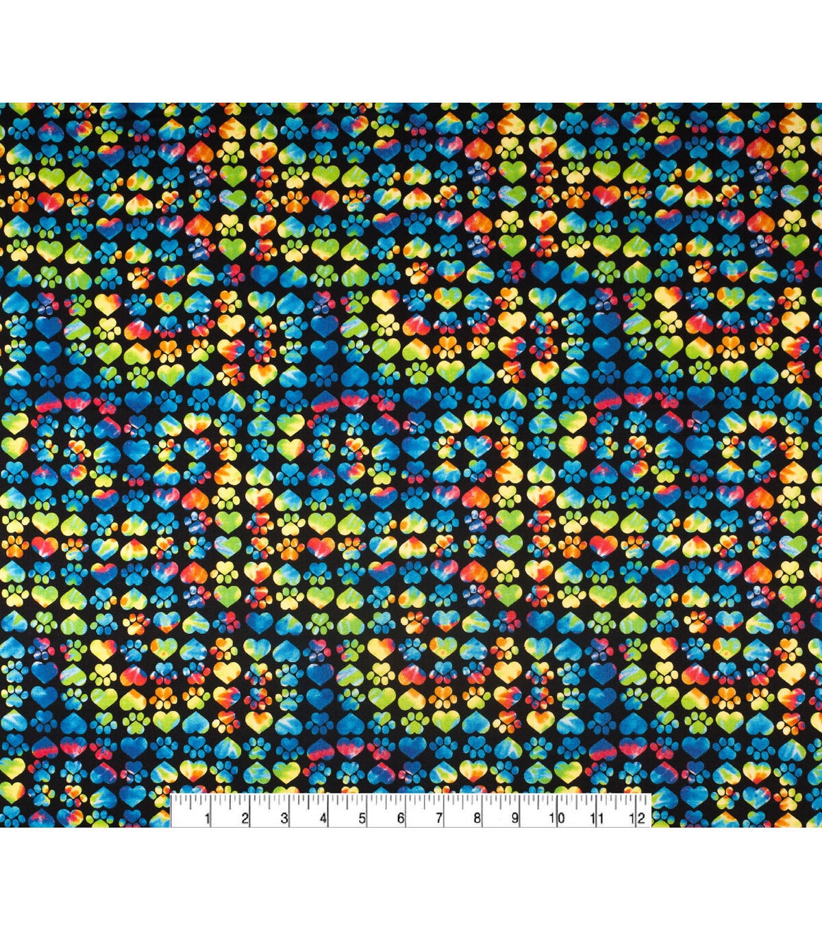 Novelty Cotton Fabric Hearts & Paws Tie Dye on Black