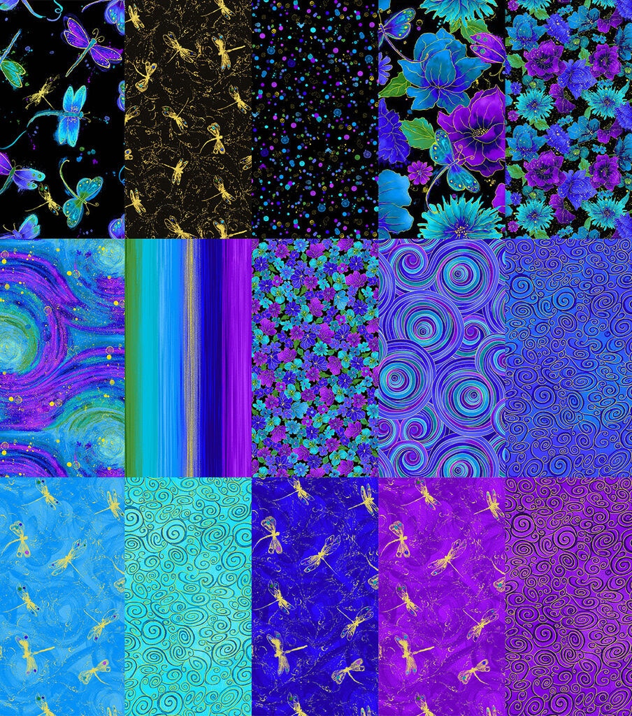 10 x 10 Hi Fashion Batik Dragonfly Metallic Cotton Fabric Squares 42pc