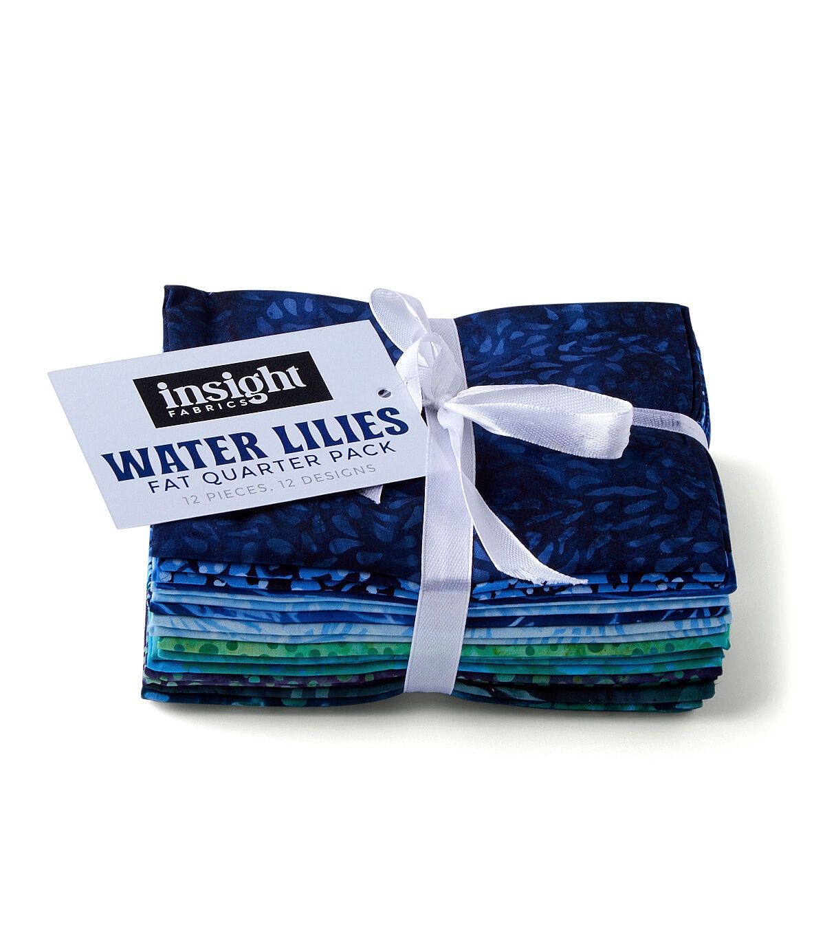 18 x 22 Blue Water Lilies Cotton Fabric Quarter Bundle 12pc