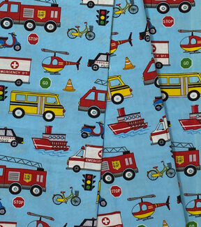 Transportation Vehicles on Blue Novelty Cotton Fabric