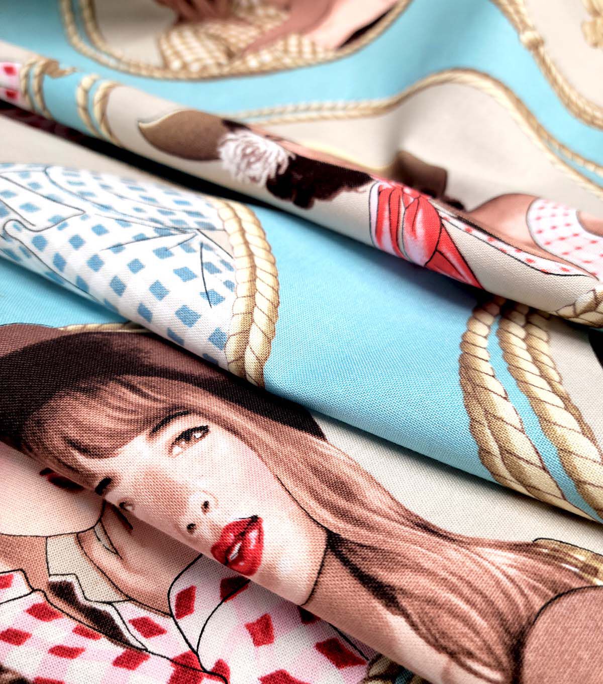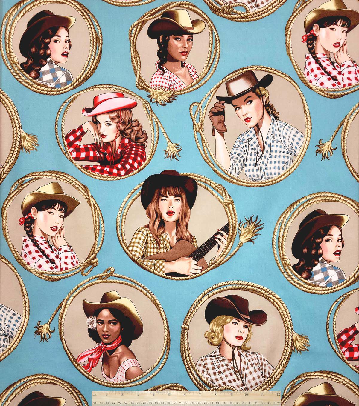 Alexander Henry Country Girl on Blue Premium Cotton Fabric