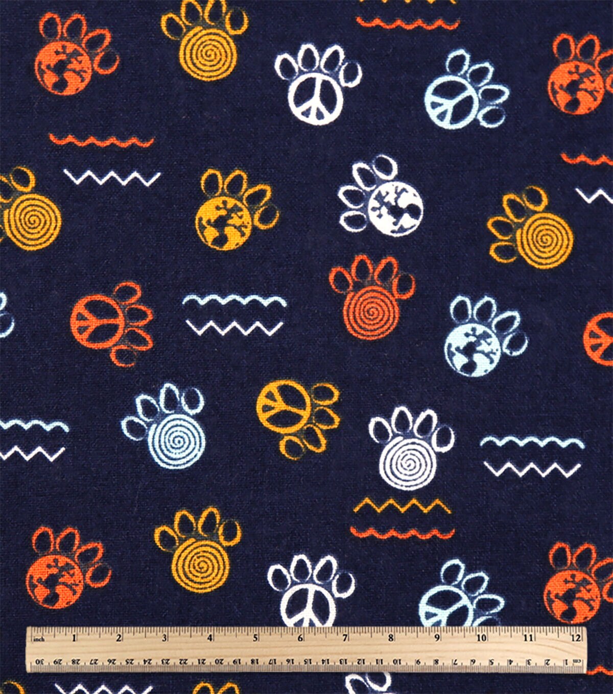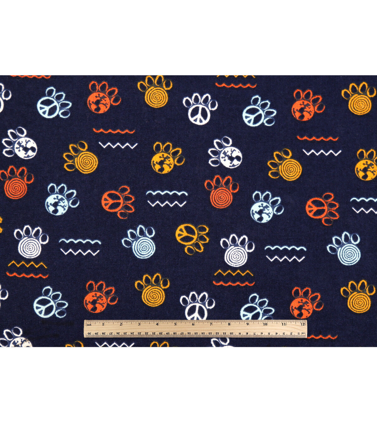 Navy Paw Print Novelty Cotton Fabric