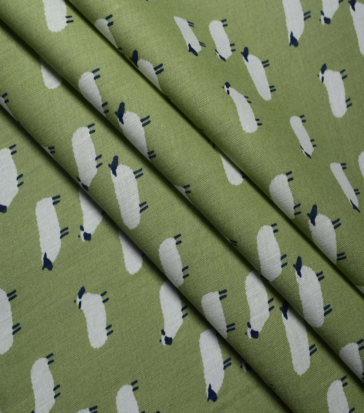 Barnyard Sheep on Green Cotton Fabric by Quilter's Showcase