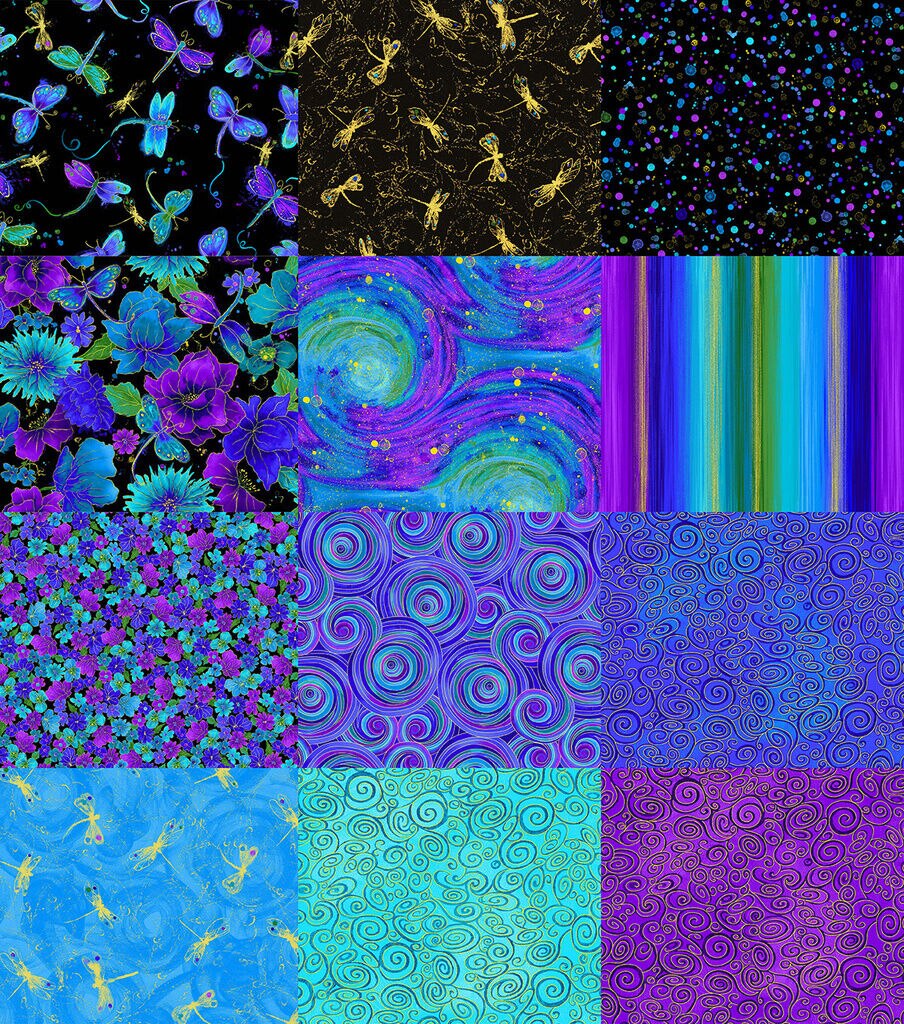 18 x 22 Hi Fashion Batik Metallic Cotton Fabric Quarter Bundles 12pc