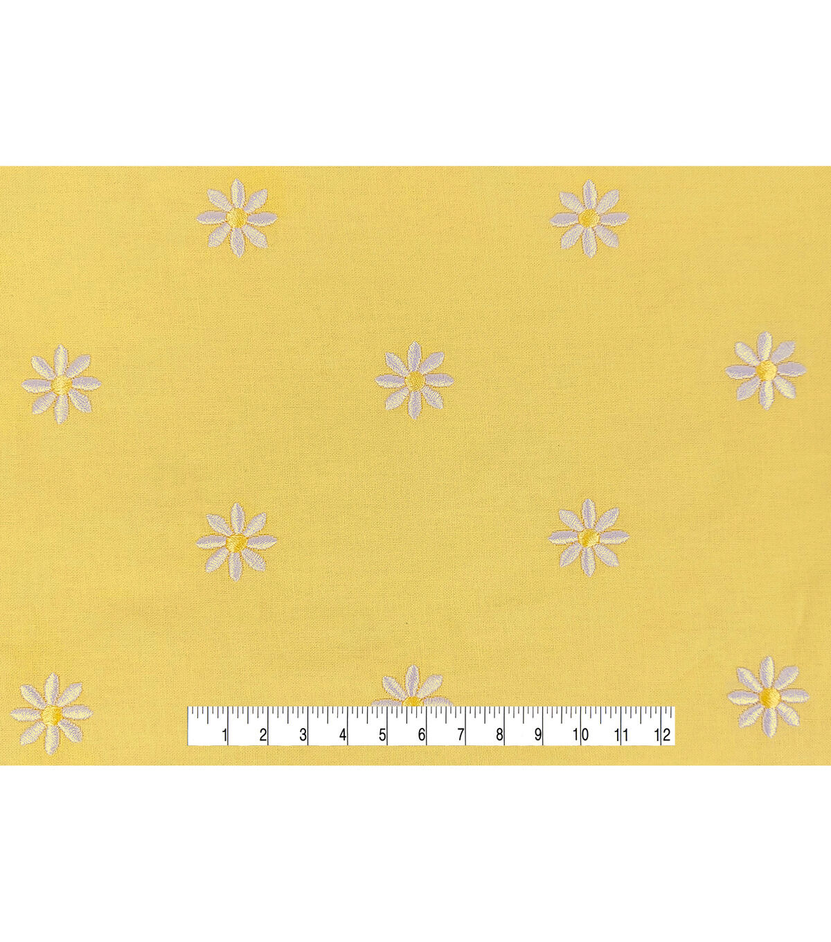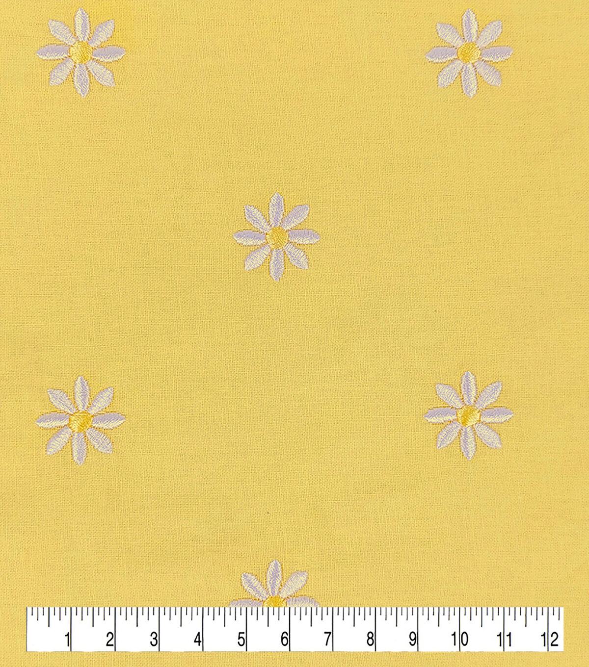 Daisy Embroideries on Yellow Quilt Cotton Fabric by Keepsake Calico