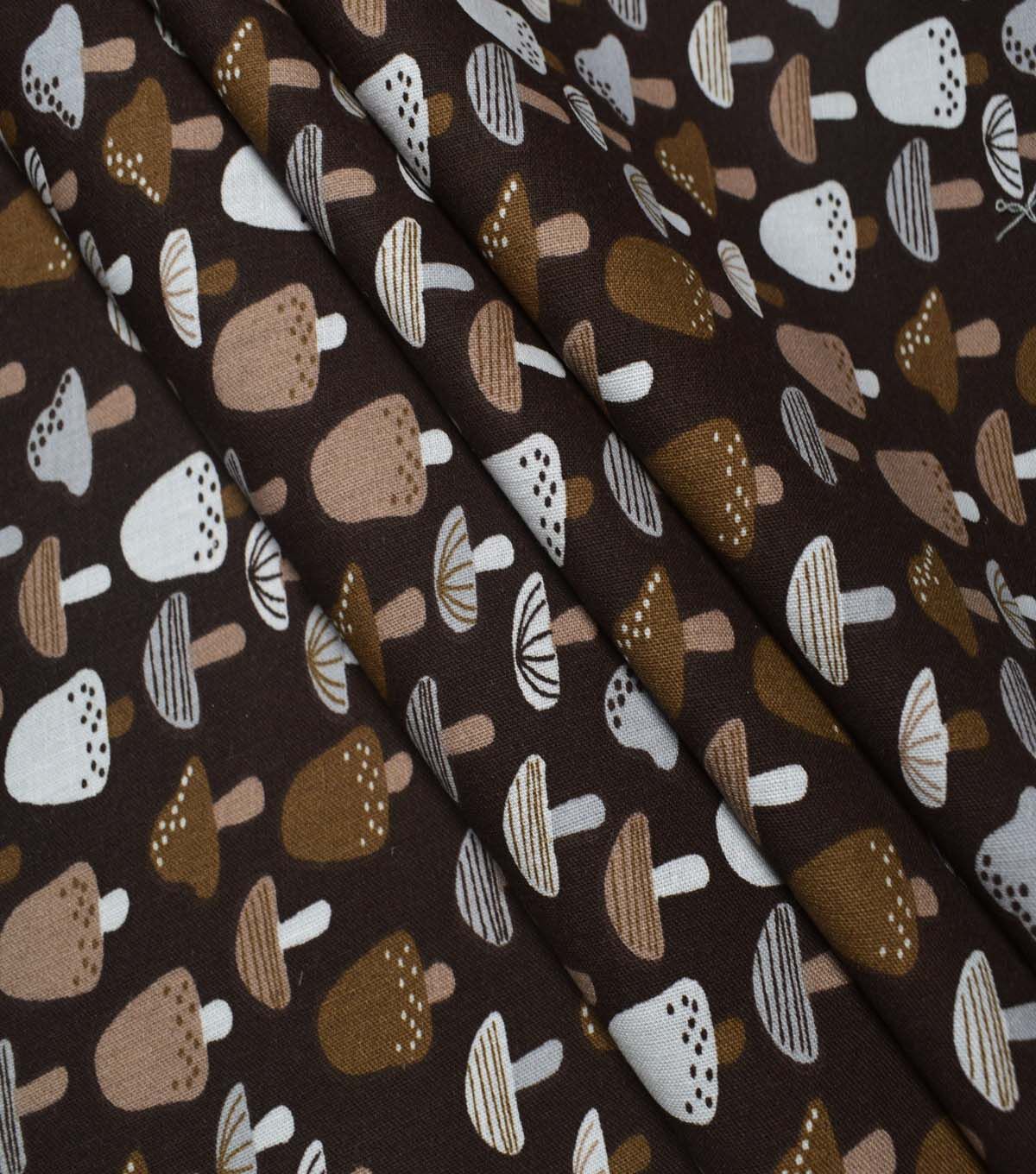 In the Wild Mushrooms on Brown Cotton Fabric by Quilter's Showcase