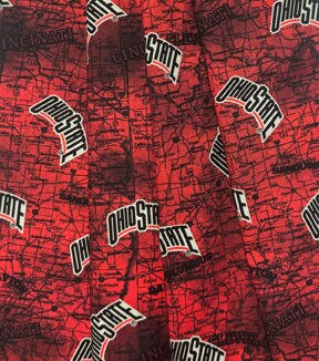 Red Distressed Ohio State Buckeyes Cotton Fabric