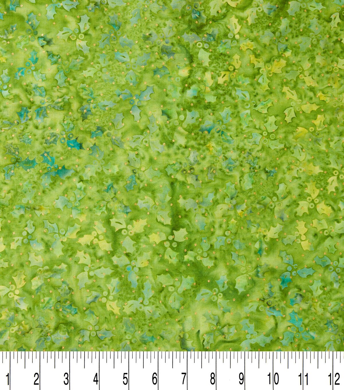 Green Winter Wishes Holly Christmas Metallic Cotton Fabric