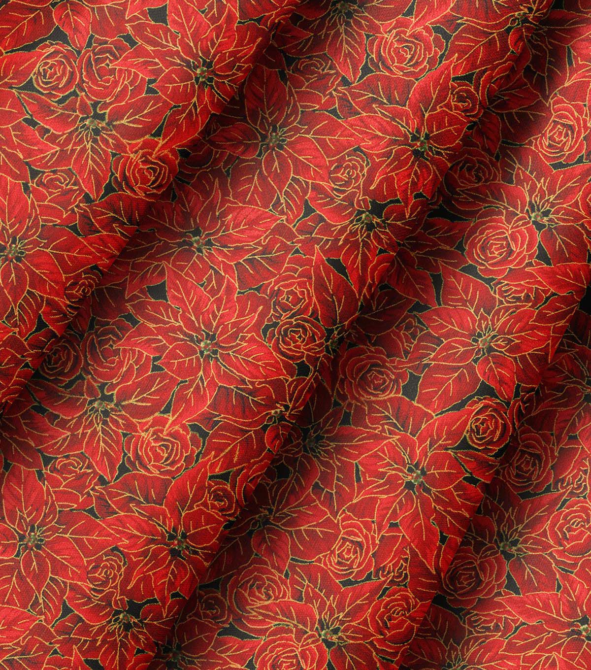 Red Gilded Poinsettias Christmas Metallic Cotton Fabric