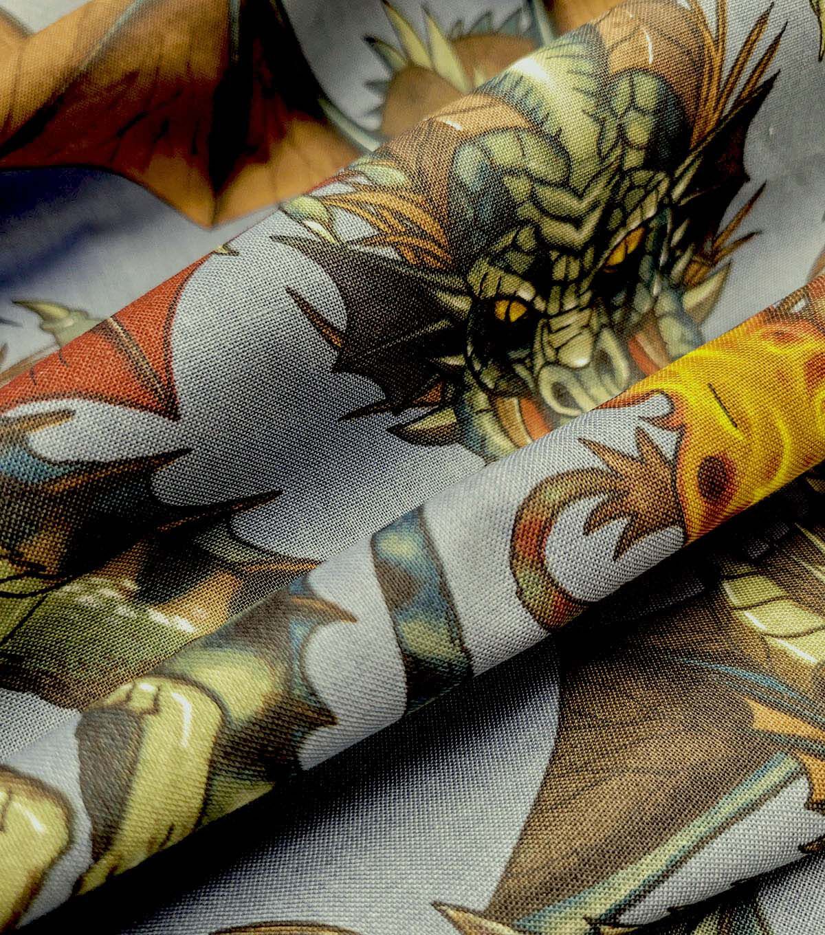 Alexander Henry Tale of The Dragons on Gray Premium Cotton Fabric