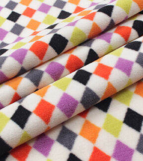 Multicolor Diagonal Checkerboard Anti Pill Fleece Fabric by POP!