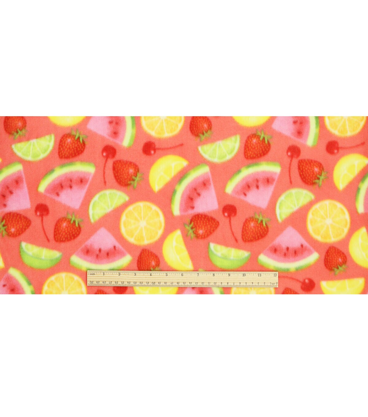 Bold Summer Mixed Fruit on Pink Anti Pill Plush Fleece Fabric