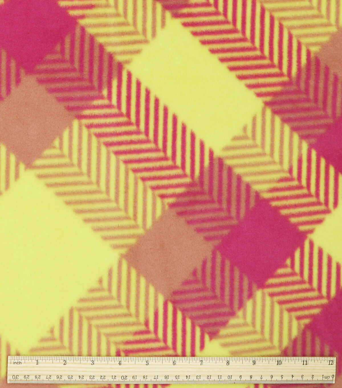 Yellow & Pink Diagonal Plaid Anti Pill Fleece Fabric