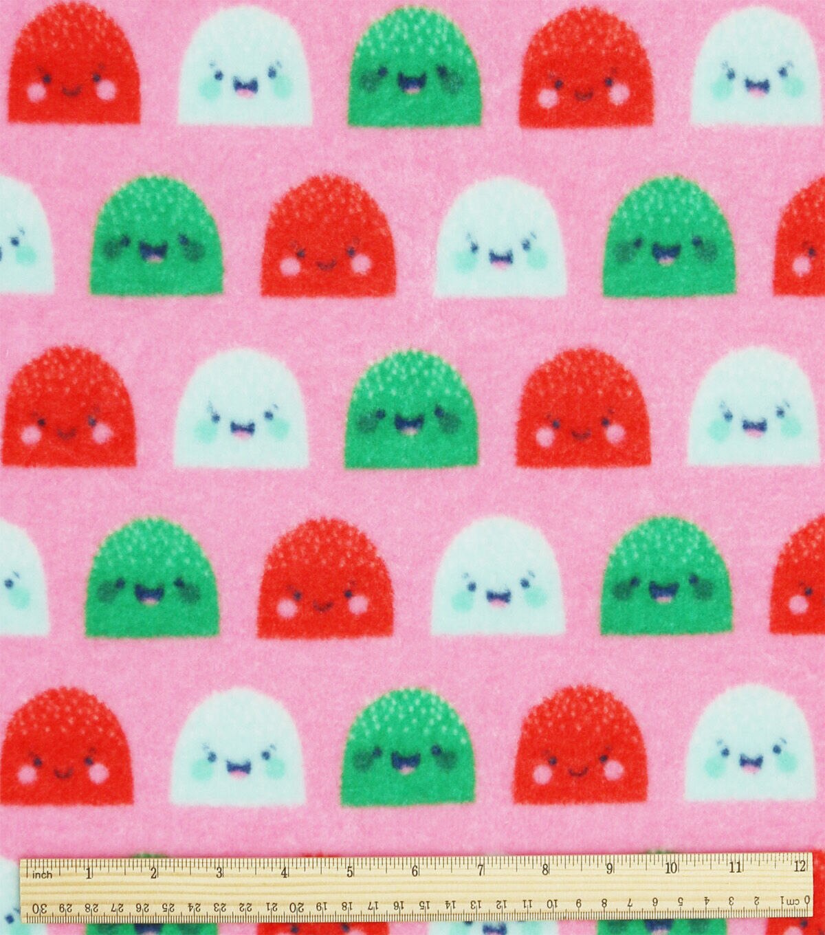 Smiley Gumdrops on Pink Anti Pill Fleece Fabric