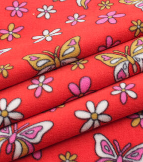Flowers & Butterflies on Orange Anti Pill Fleece Fabric