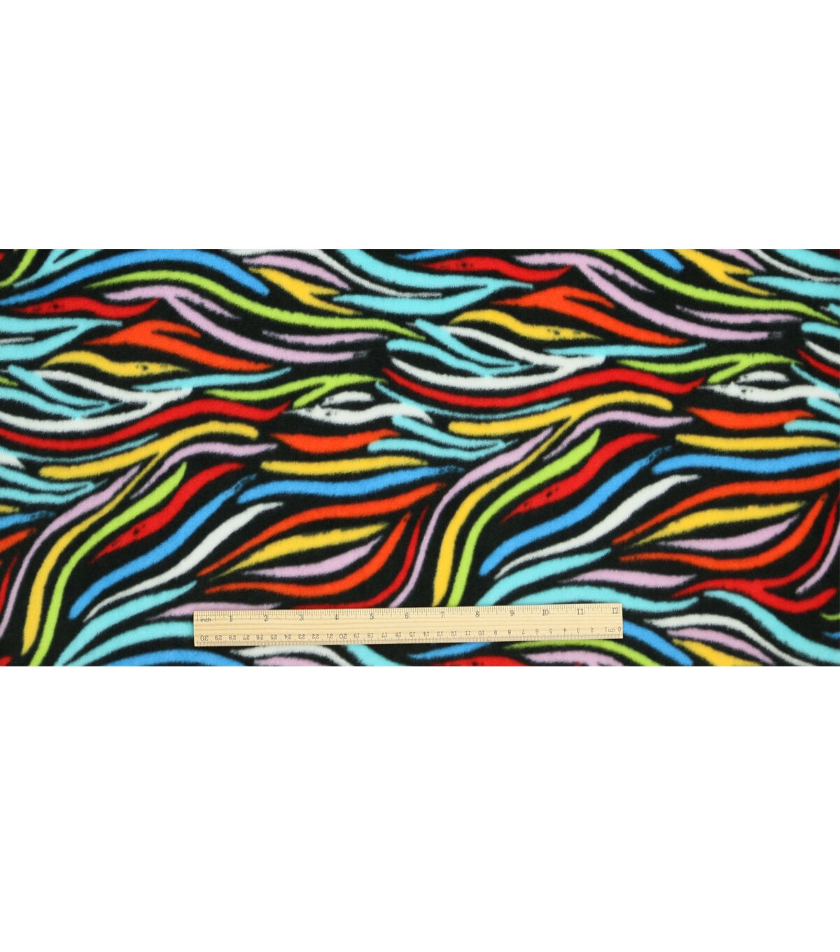 Bright Rainbow Zebra Skin on Black Anti Pill Plush Fleece Fabric