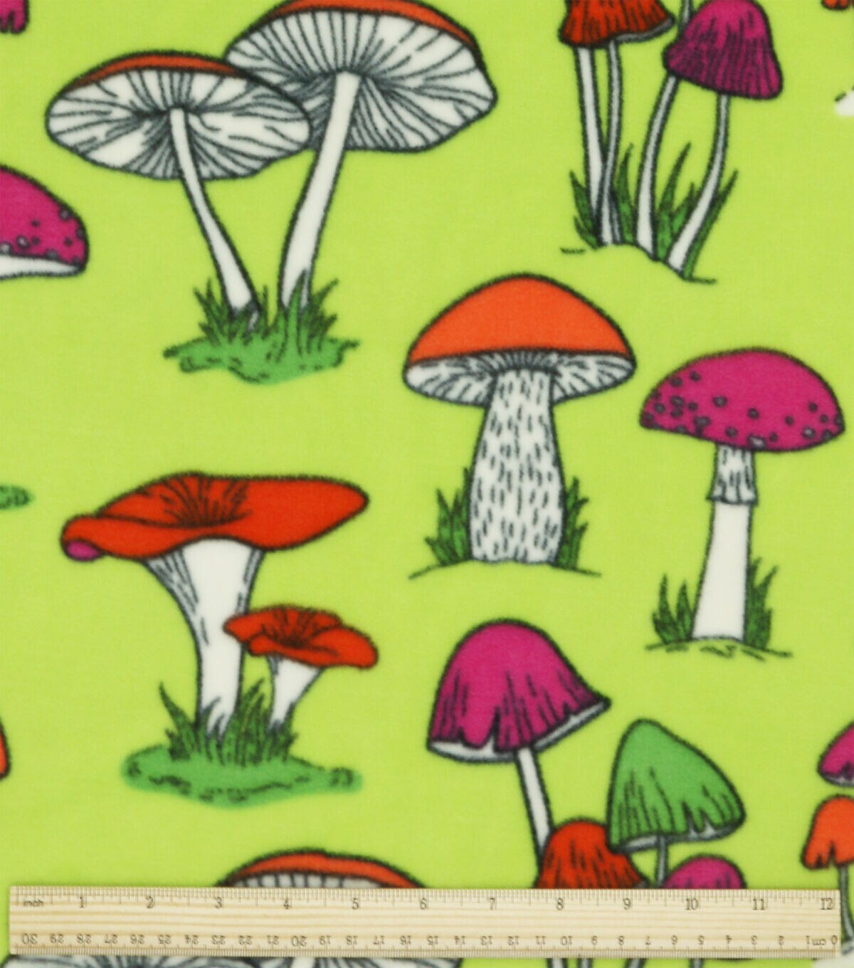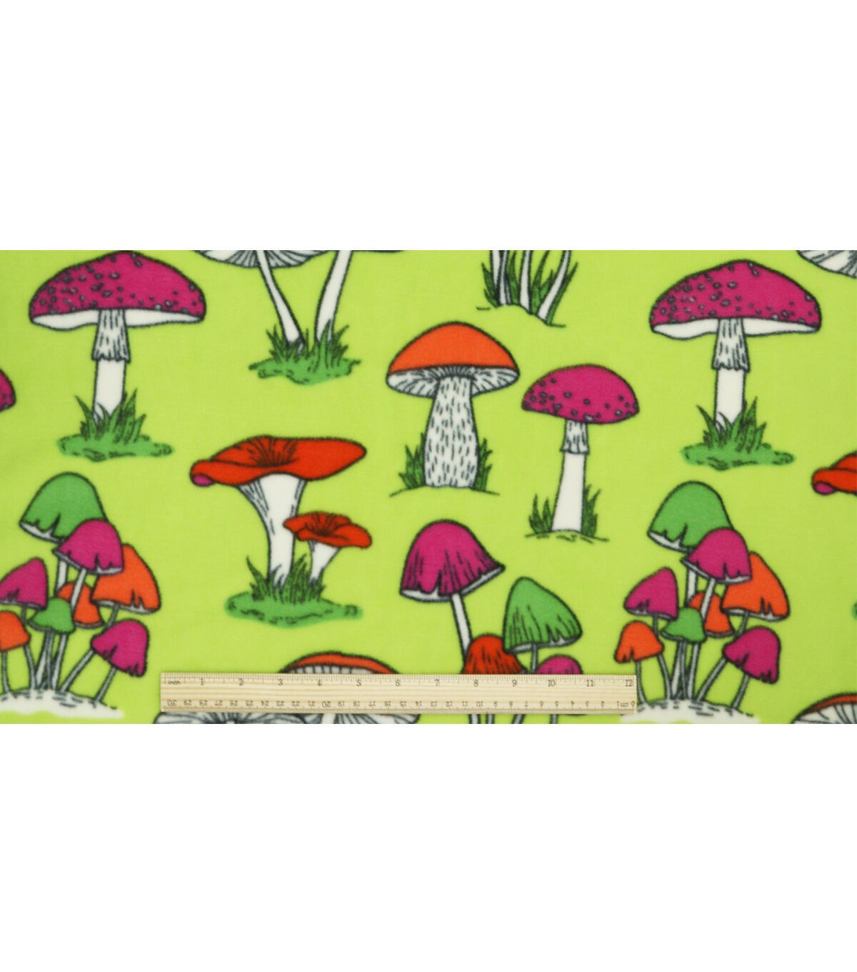 Funky Mushrooms on Green Anti Pill Fleece Fabric