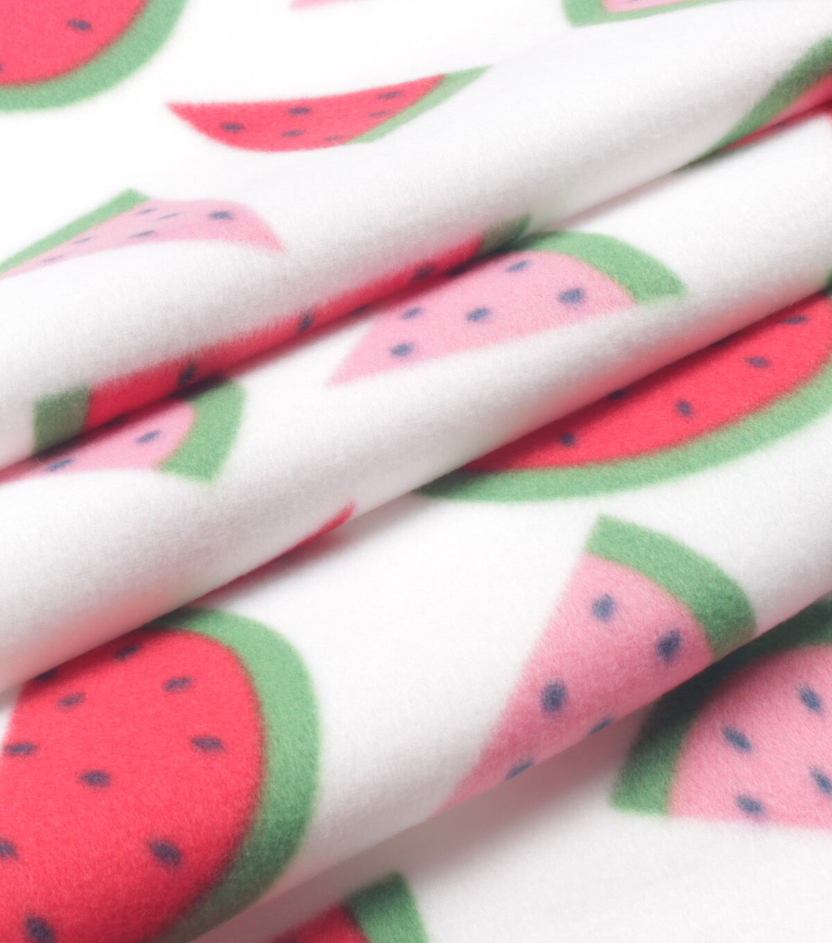 Strawberry Hearts on White Blizzard Fleece Fabric