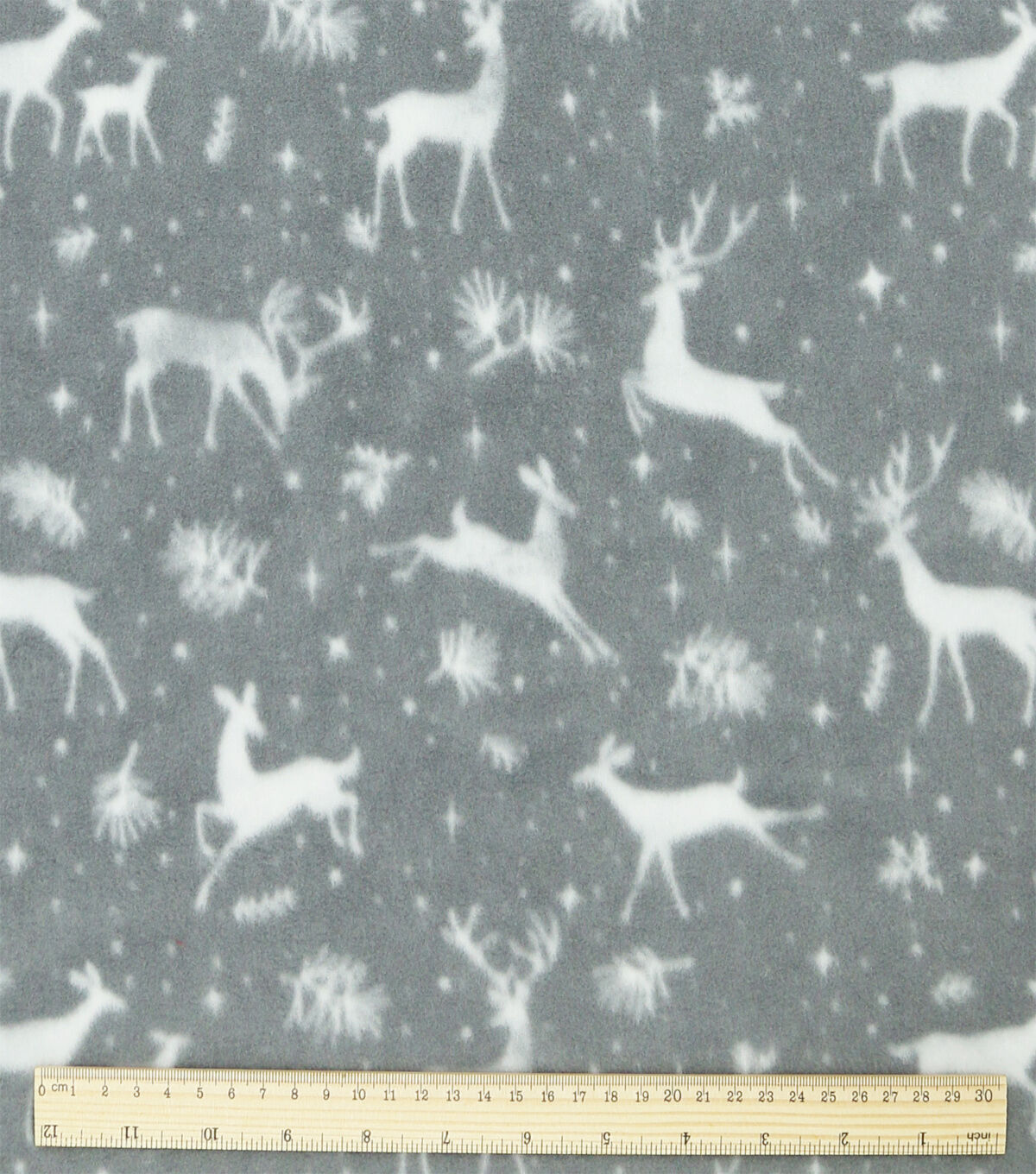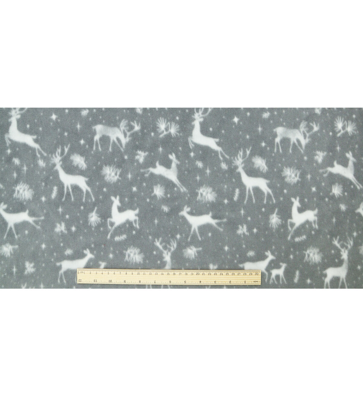 White Reindeer on Gray Anti Pill Fleece Fabric