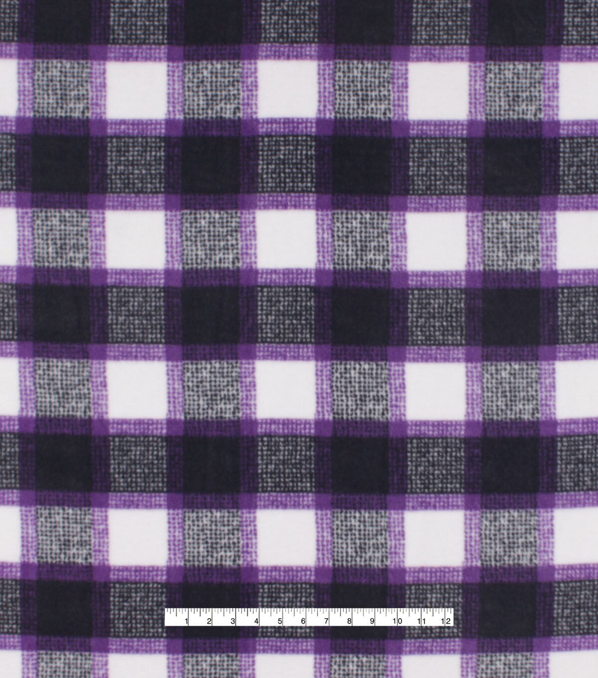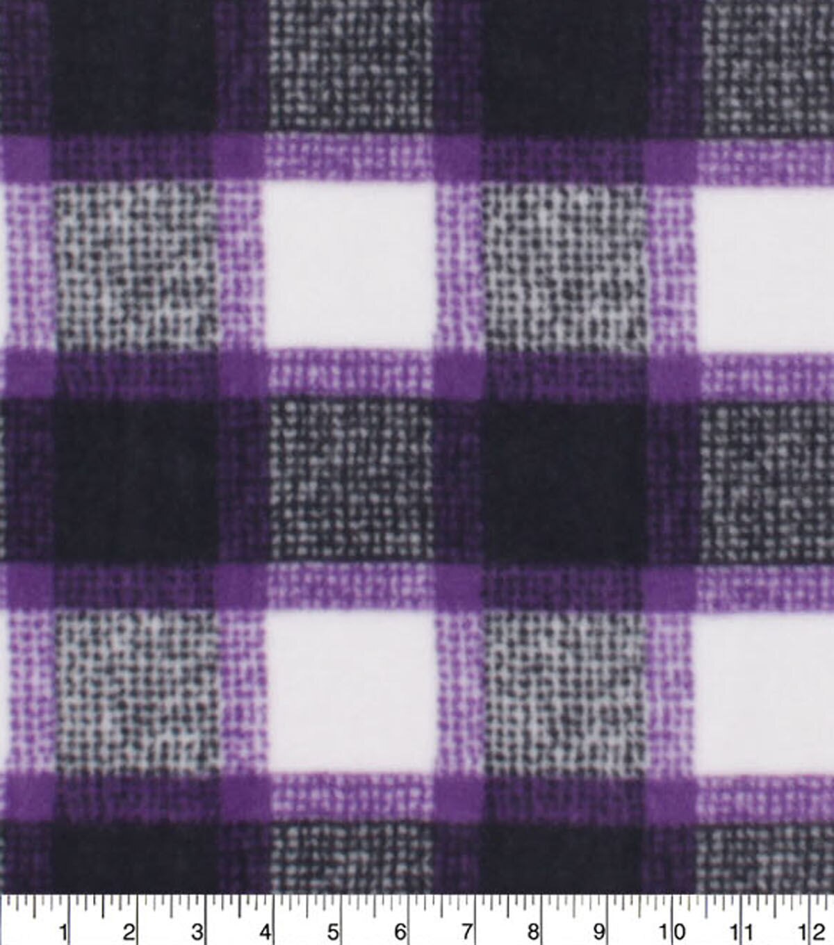 Purple & Black Textured Plaid Anti Pill Fleece Fabric