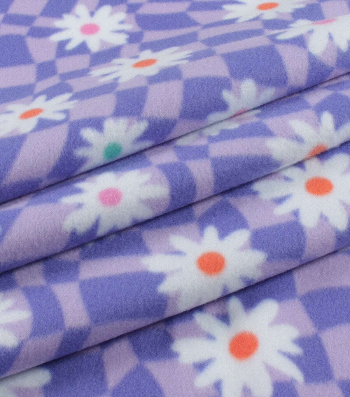 Floral On Purple Wavy Checkered Blizzard Prints Fleece Fabric