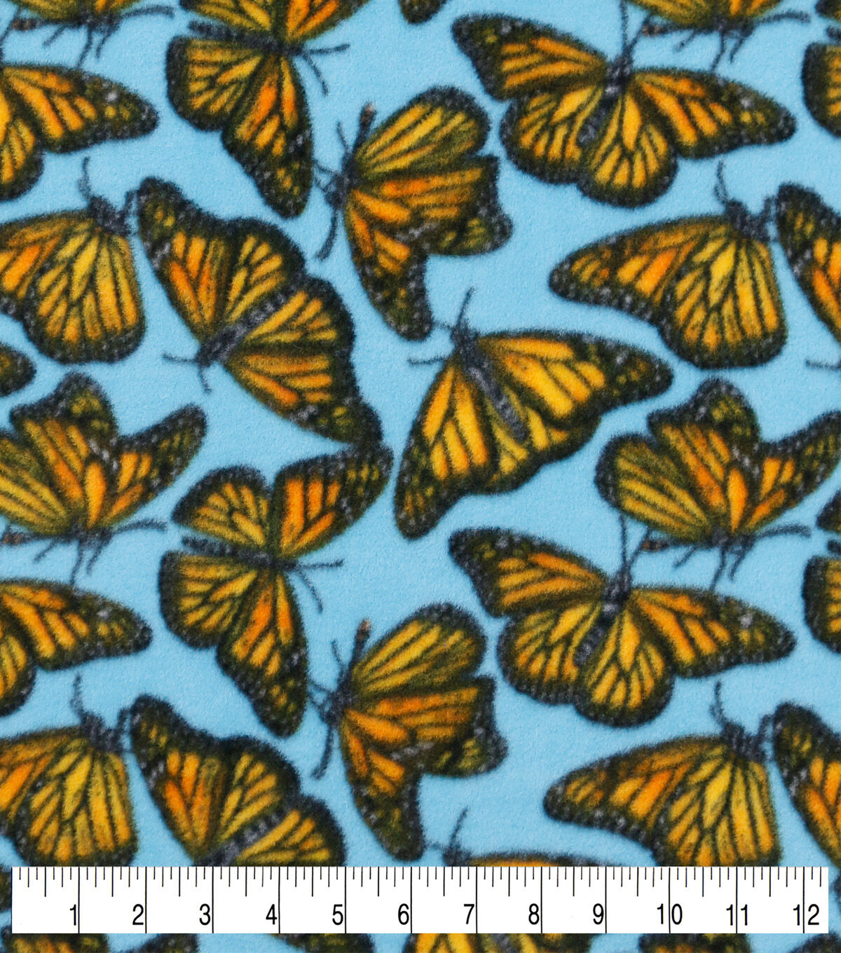 Monarch Butterflies on Blue Anti Pill Fleece Fabric