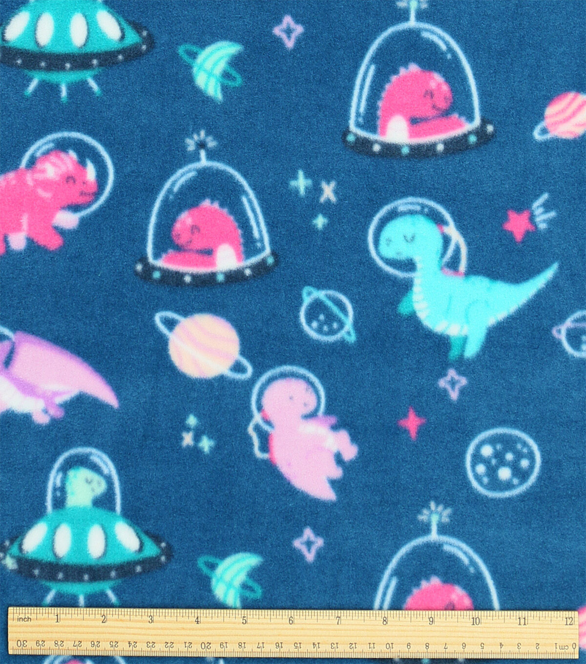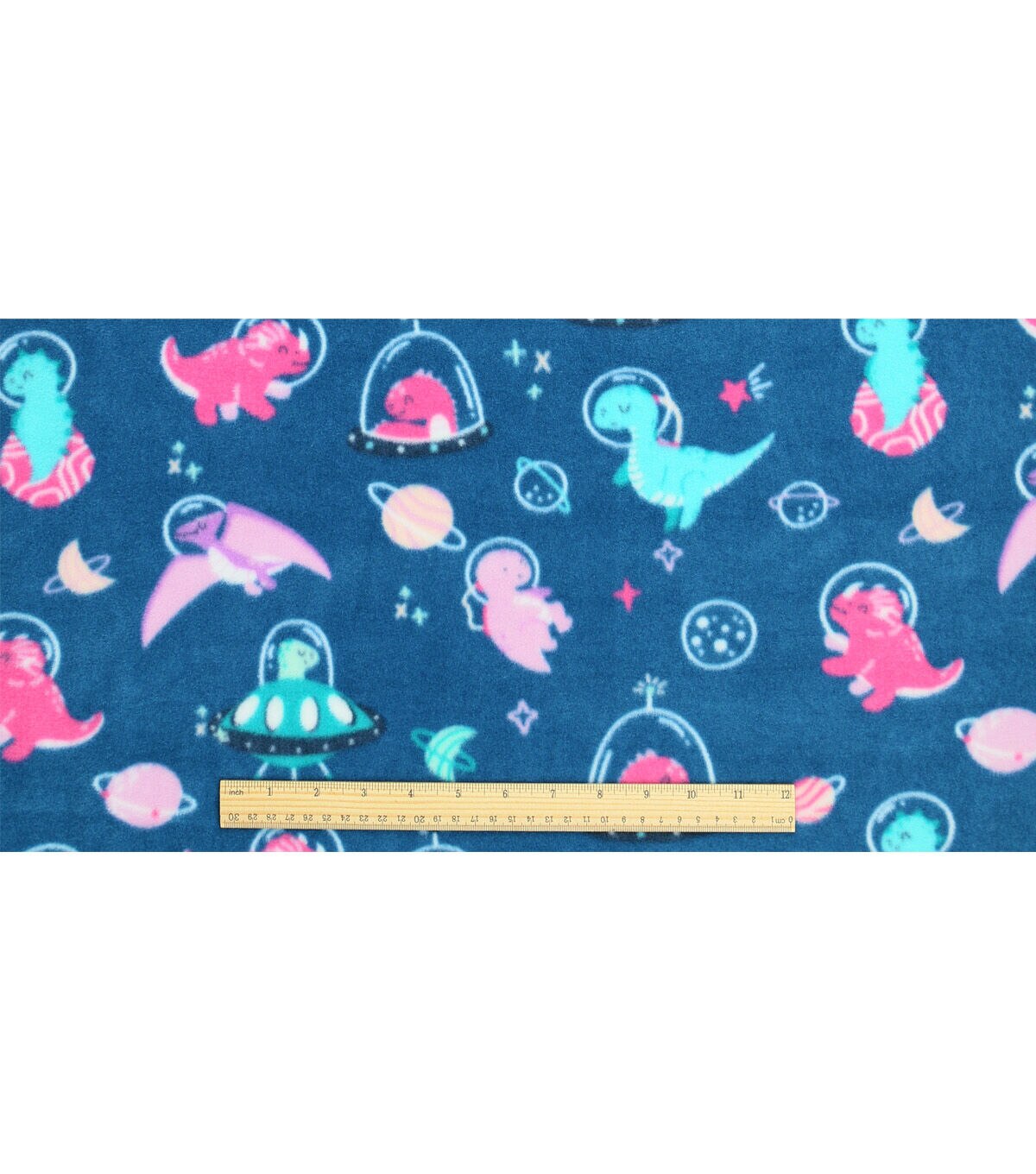 Blue Dinosaurs In Space Anti Pill Plush Fleece Fabric