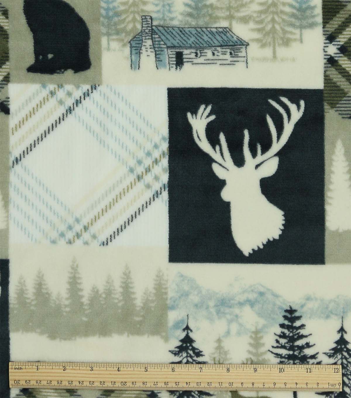 Dark Green Lodge Patchwork Sew Lush Fleece Fabric