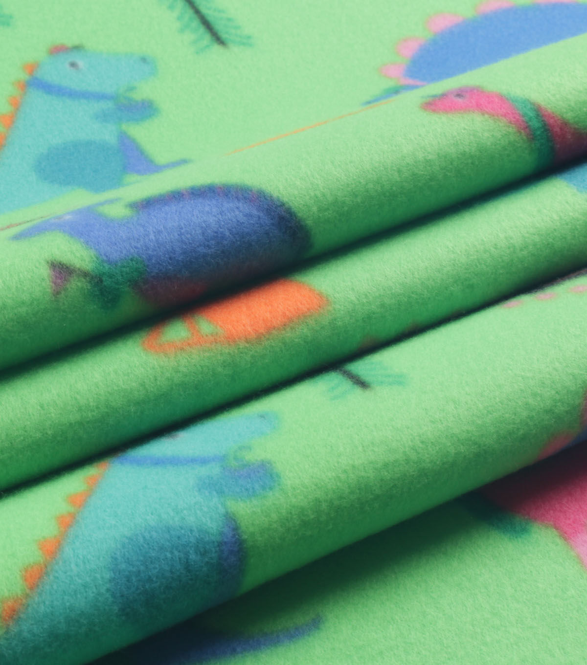 Camping Dinosaurs on Green Blizzard Fleece Fabric