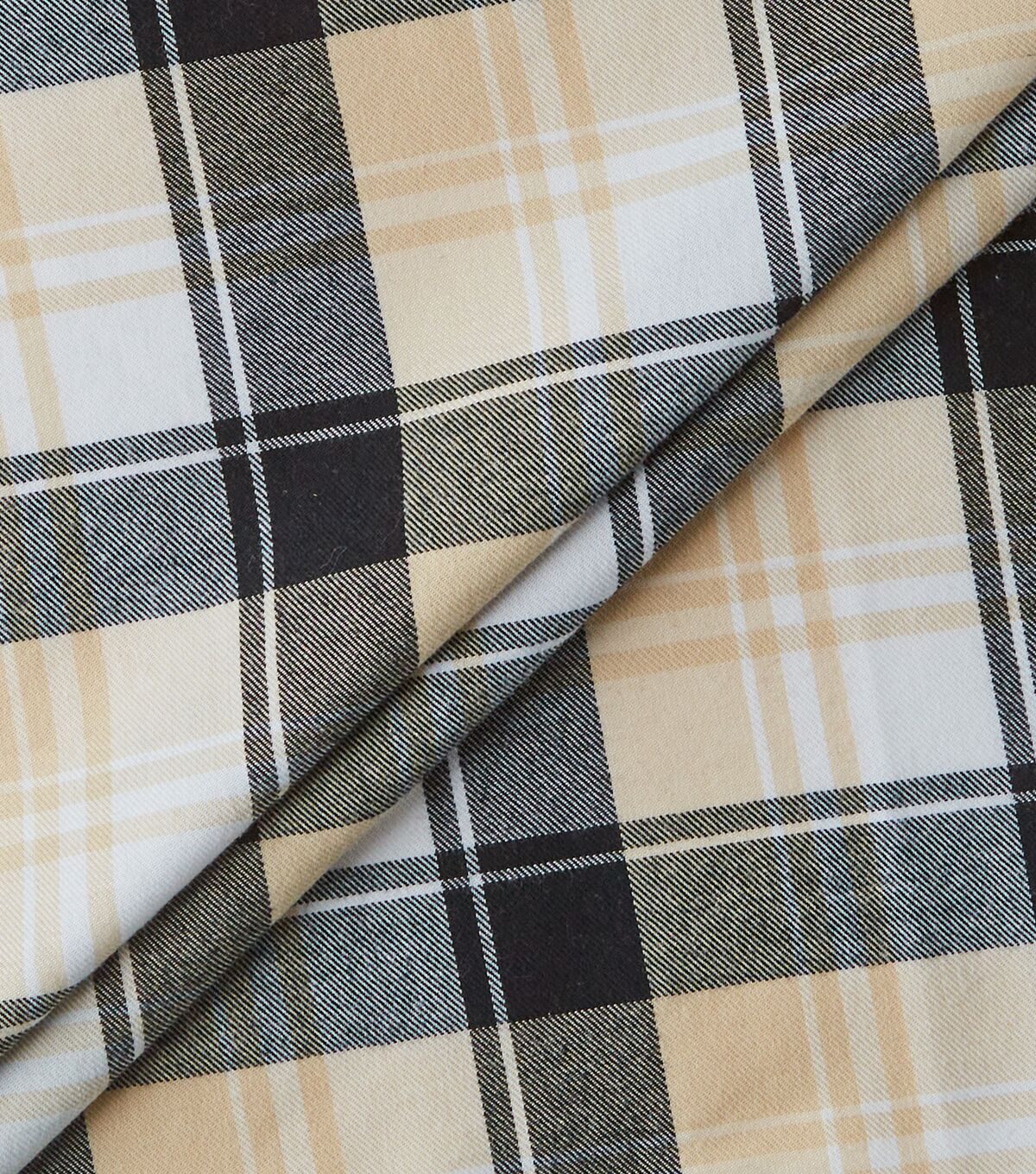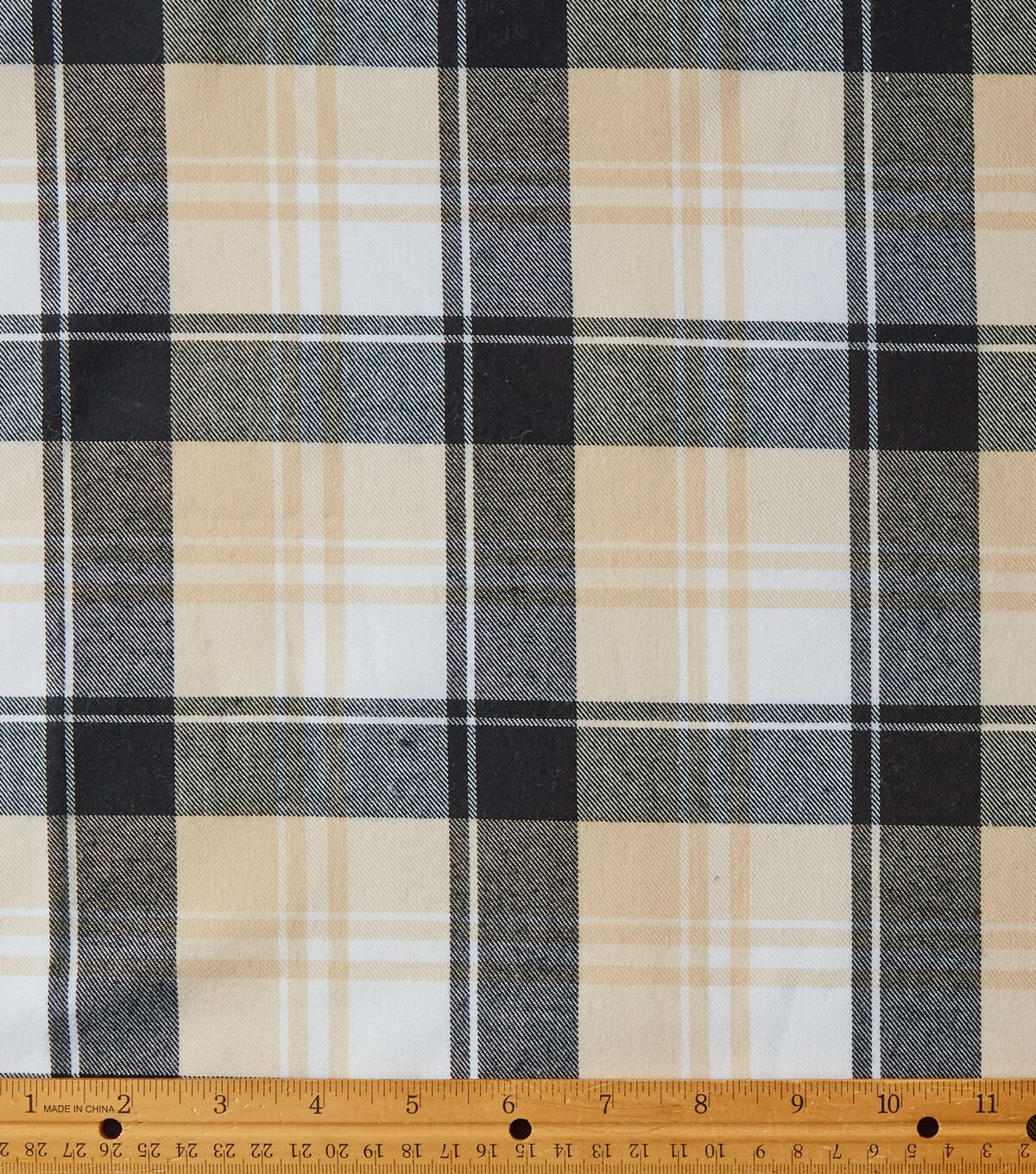 Eddie Bauer Black & Cream Plaid Cotton Tencel Flannel Fabric