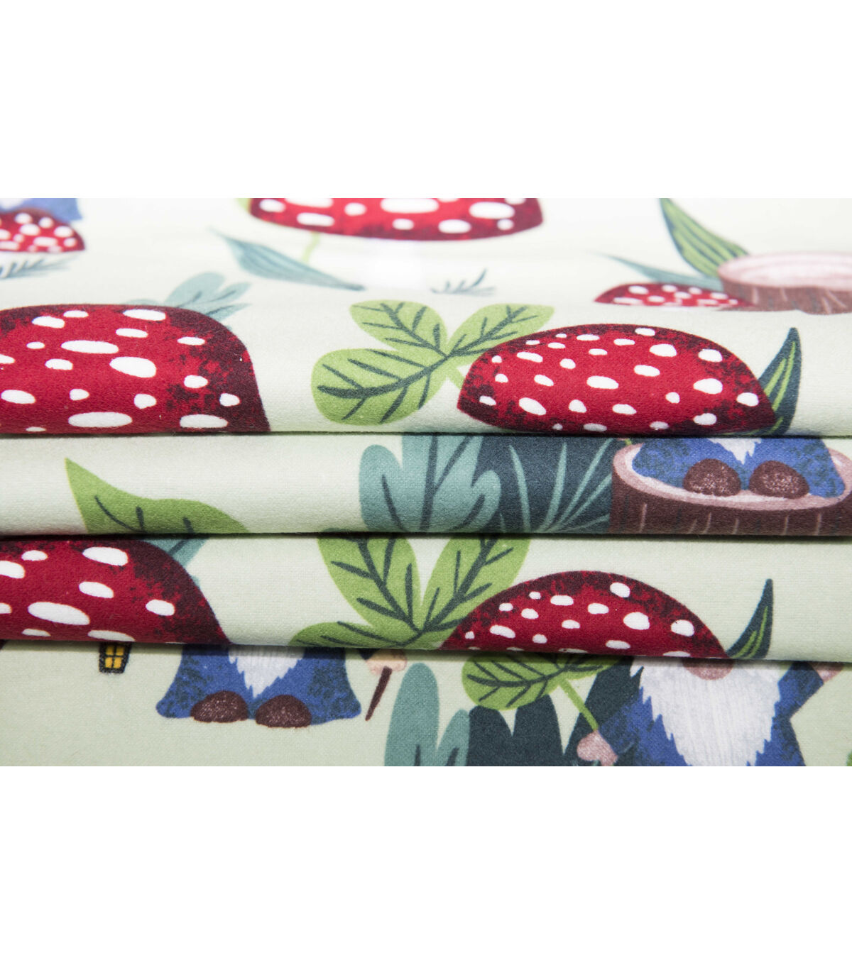 Super Snuggle Gnome & Mushrooms Flannel Fabric