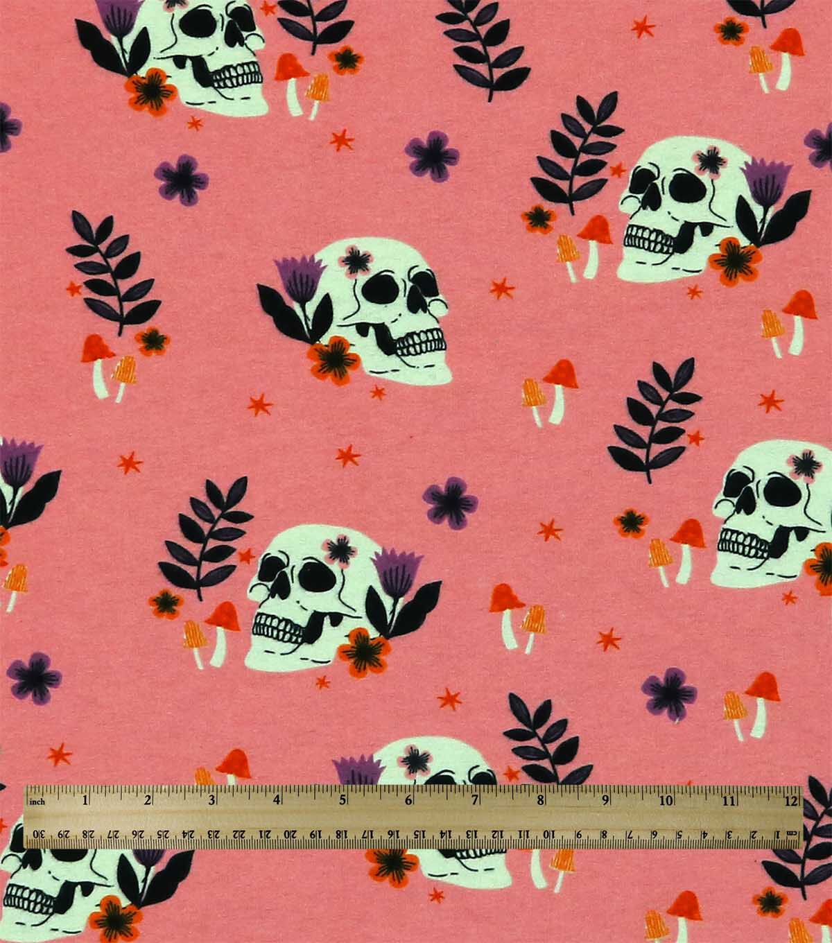 Pink Skulls & Plants Super Snuggle Flannel Fabric