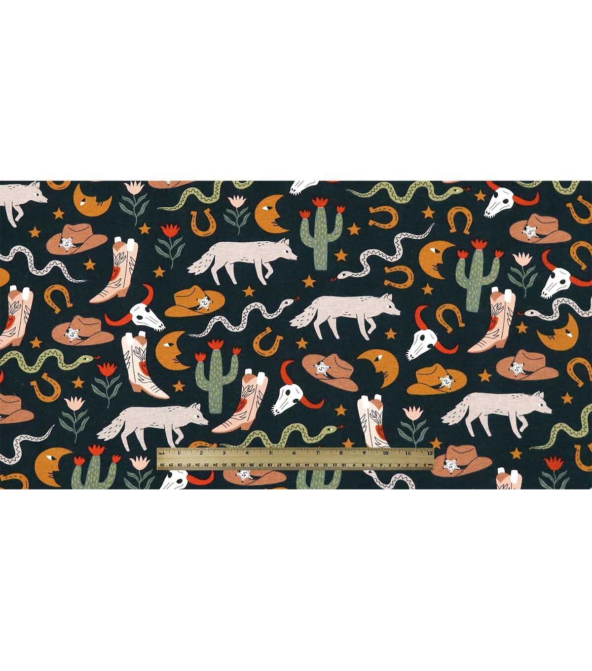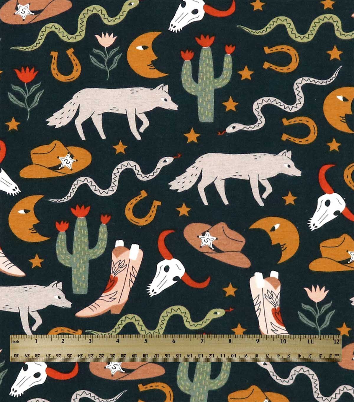 Western Icons On Black Super Snuggle Flannel Fabric