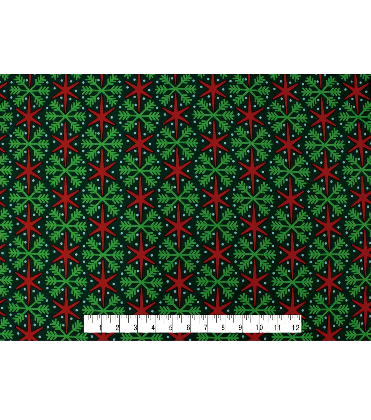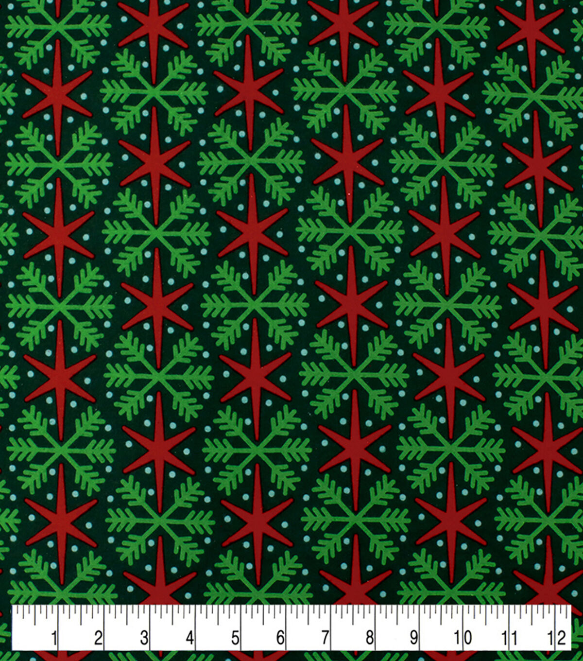 Green Snowflakes on Red Super Snuggle Christmas Flannel Fabric