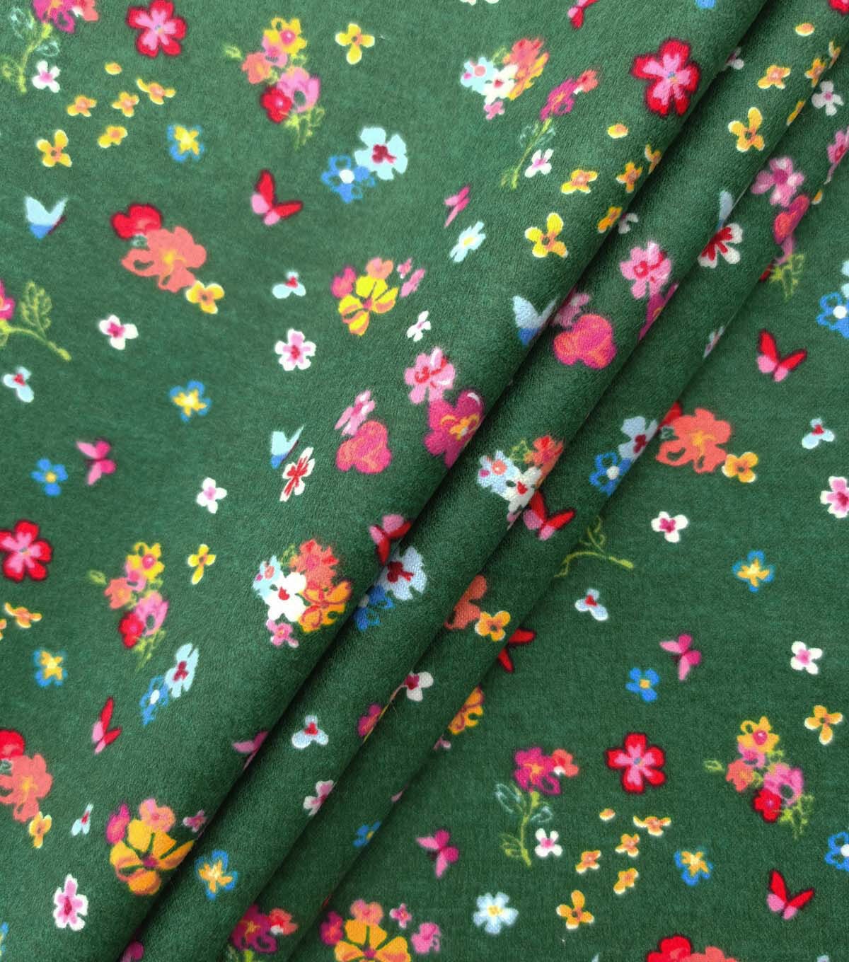 Floral & Butterfly on Green Luxe Flannel Fabric