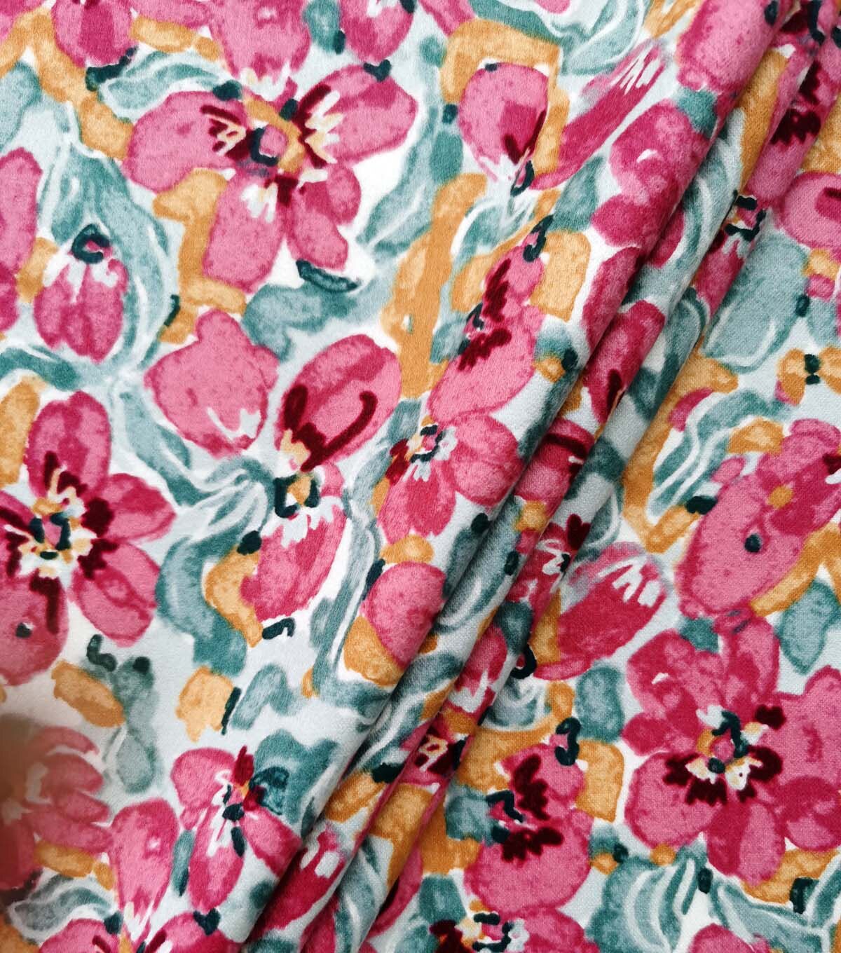 Pink Painted Floral Luxe Flannel Fabric